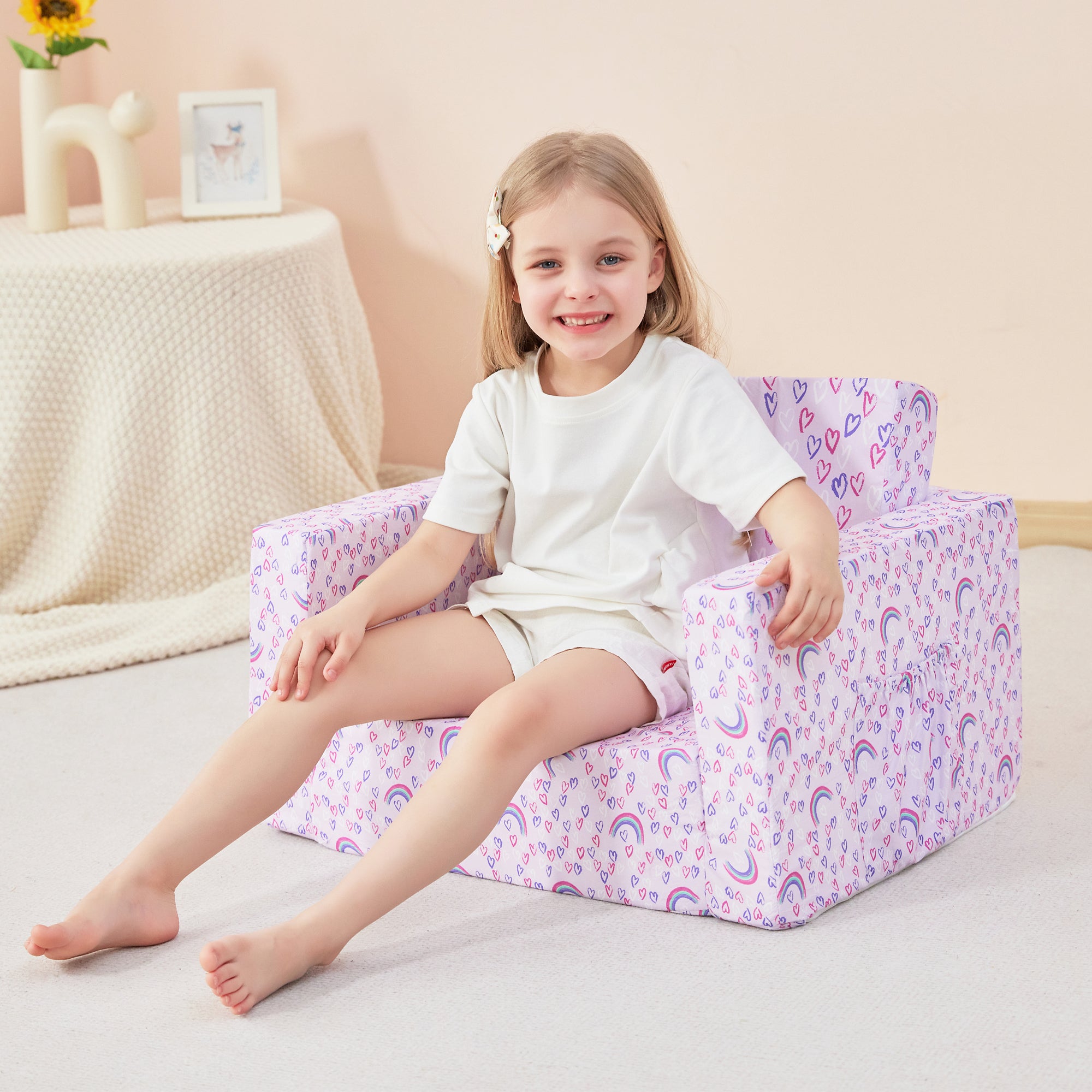 Kids Sofa 2-in-1 Toddler Couch Purple Rainbow