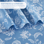 - Juego de sábanas con estampado de cachemira azul de primera calidad: hecha de tela de microfibra cepillada doble de alta calidad, nuestra sábana con estampado de flores azules brinda un tacto suave y liso para una noche de sueño confortable.