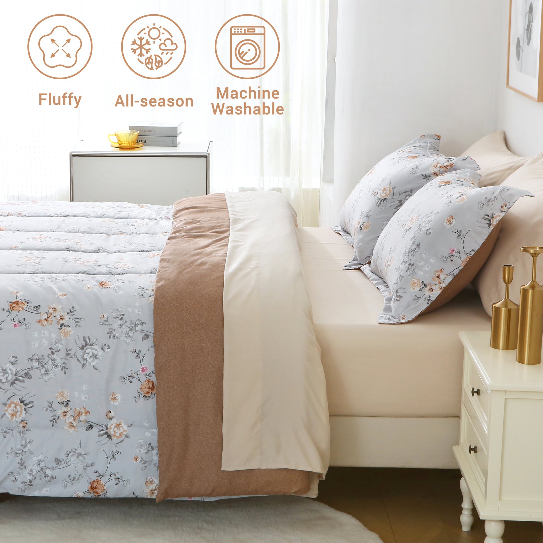 ULTRA SOFT AND COMFORTABLE: The comforter set is made from premium microfiber and filled with an ultra-soft down alternative for incredible warmth and comfort. This ensures you get a great night's sleep. These full size bedding sets are lightweight and suitable for year-round use, providing comfort no matter the season