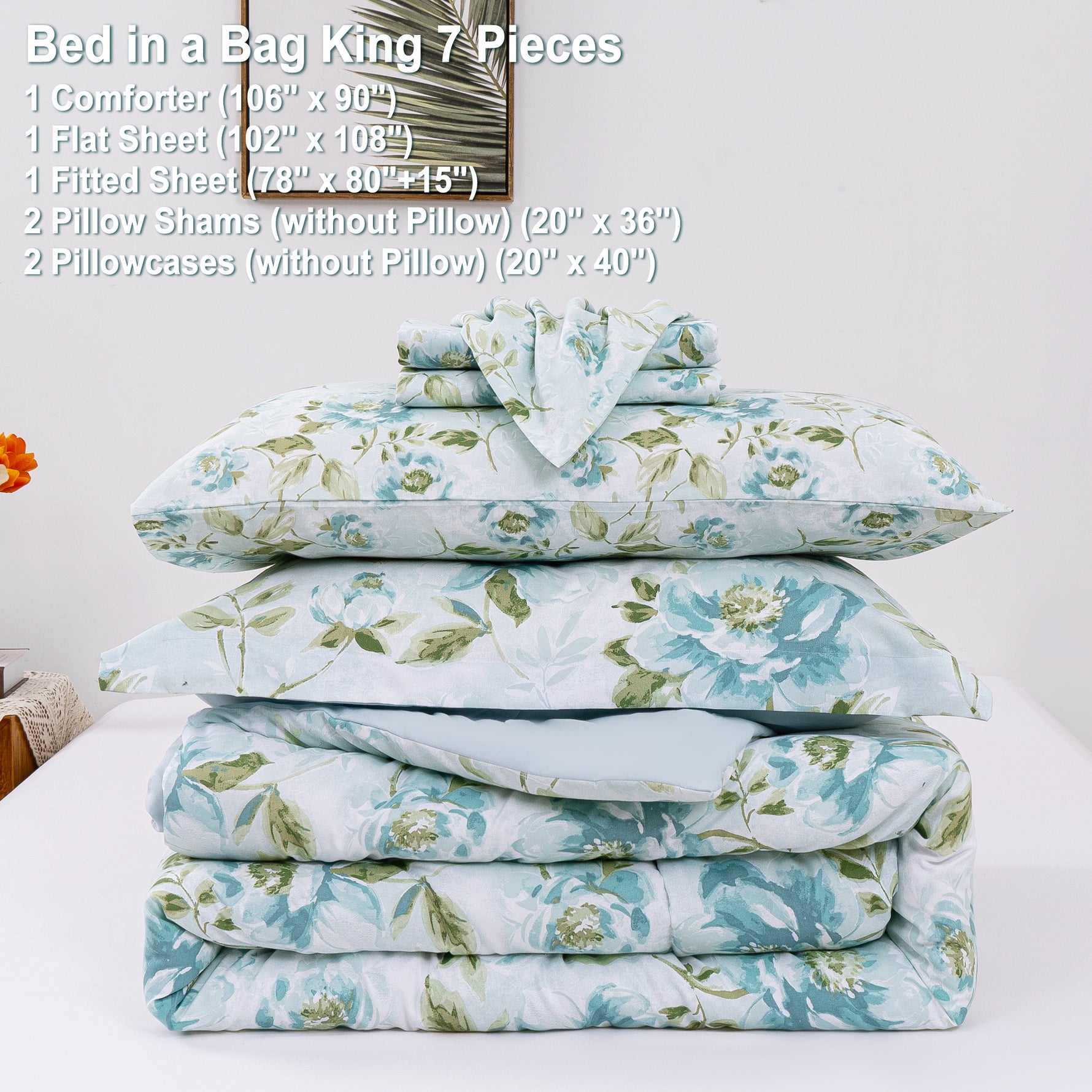 JUEGO COMPLETO DE 7 PIEZAS EN BOLSA PARA CAMA KING: Este juego de edredón tamaño king incluye un edredón (264 x 228 cm), una sábana encimera (274 x 264 cm), una sábana ajustable (198 x 203 cm + 35 cm), dos fundas de almohada (50 x 101 cm) y dos fundas de almohada (50 x 91 cm). Todo lo que necesitas para transformar tu cama en un remanso de lujo está aquí.