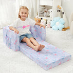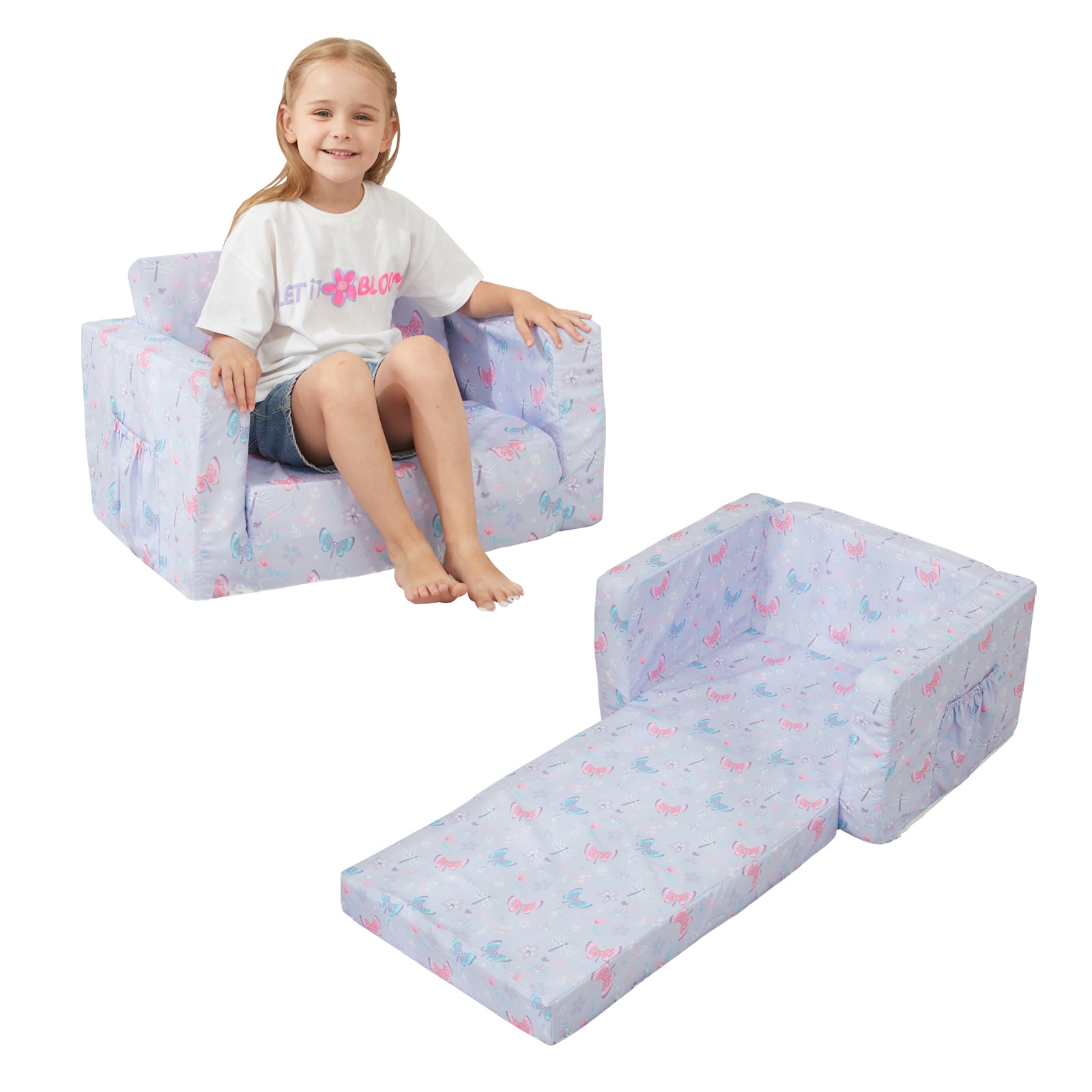 - Kids Couch Flip Open Design: The 2 in 1 flip open sofa easily convert into lounger. Idear for kids reading, watching, playing. Simply pull out in seconds to use as a comy nap pad for sleeping and relaxing. Recommended for 18 months and older