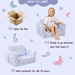 - Unbox & Expand:The kids' couch comes vacuum-packed. Simply unwrap it and allow 48-72 hours for it to fully expand into a soft, plush sofa for your child.