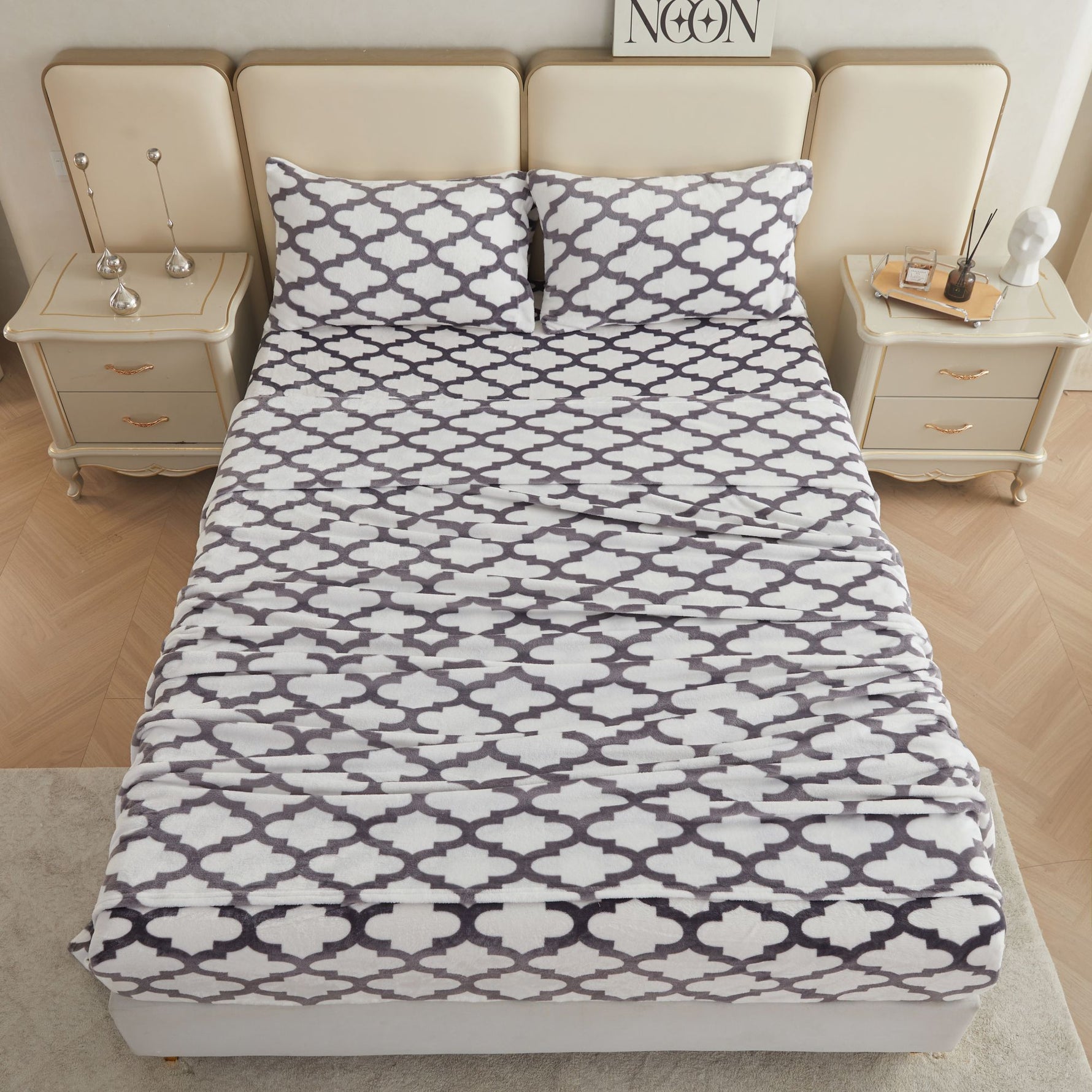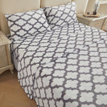 Viviland Quatrefoil Grey Microfleece Queen Sheet Set