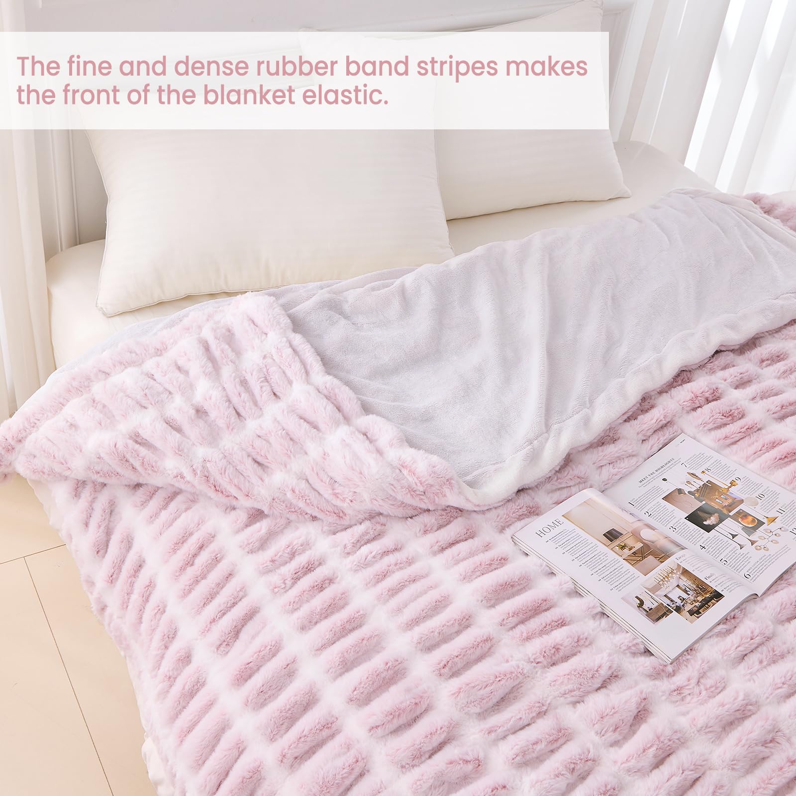 Couverture en fausse fourrure rose clair et chaude 50" x 60"