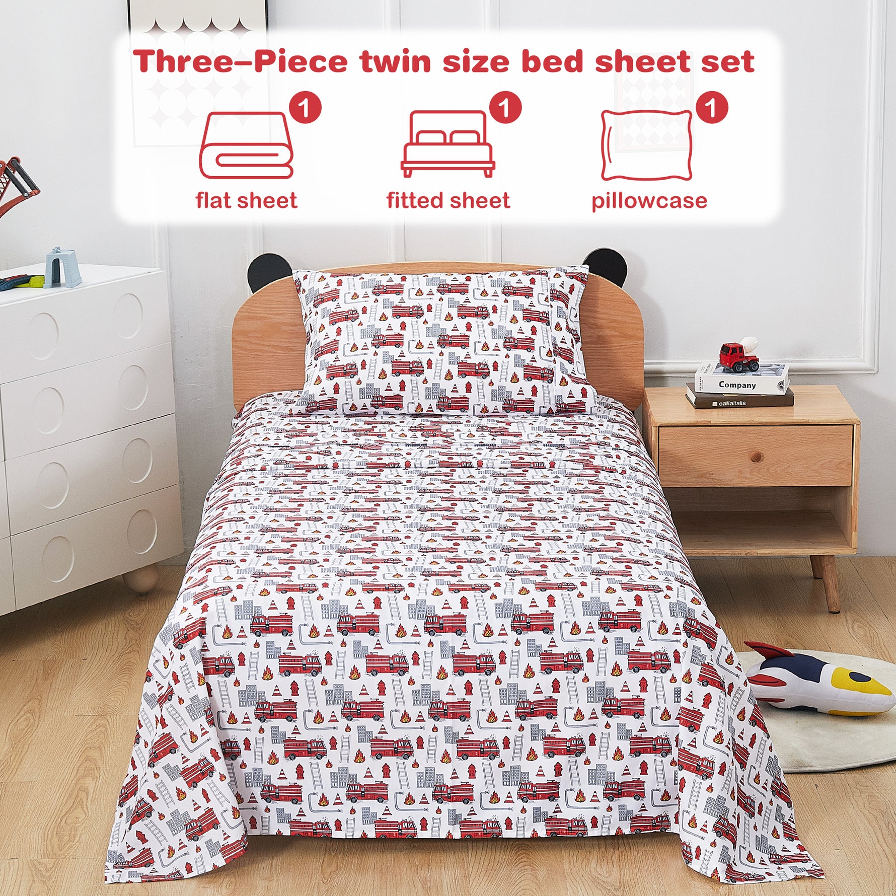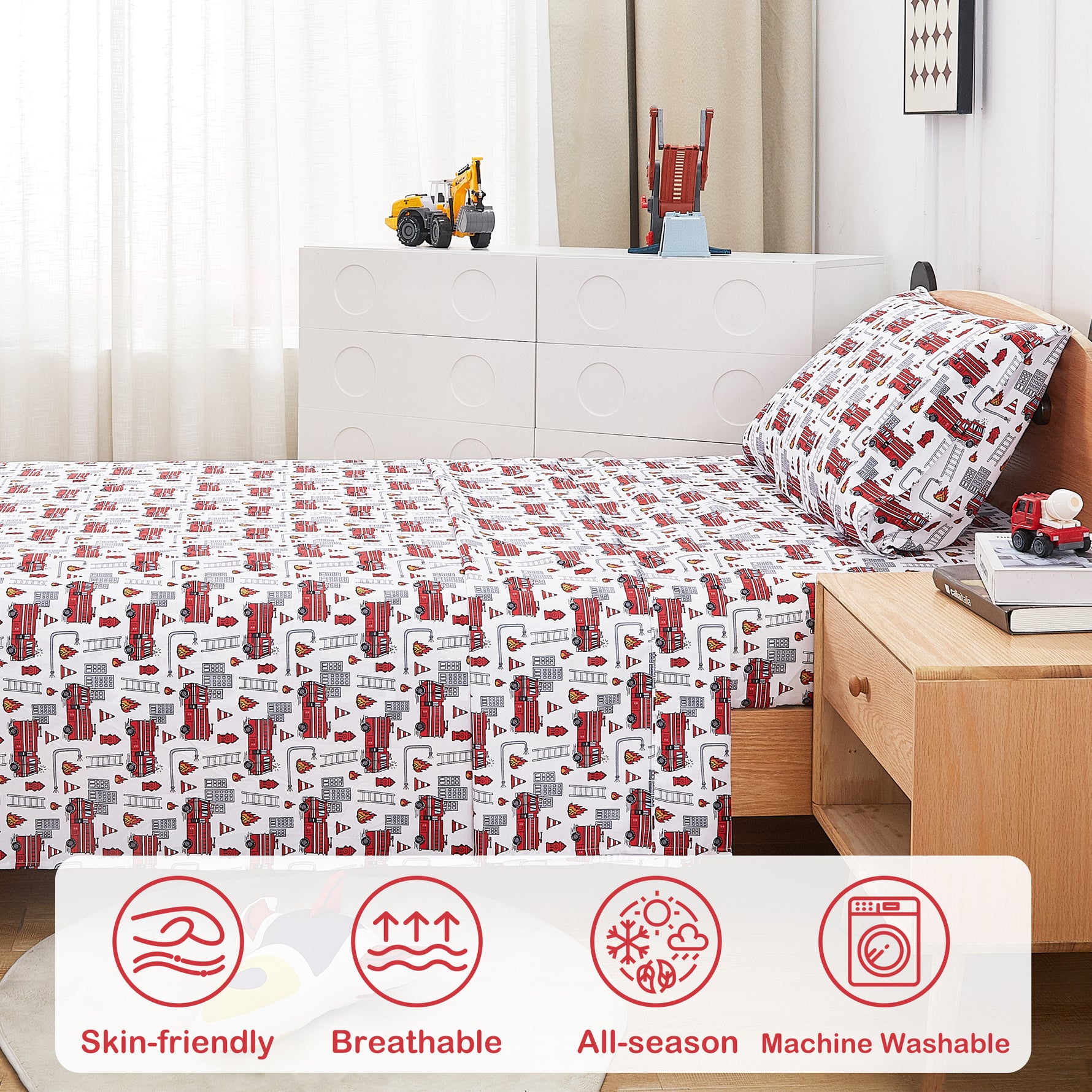 Happy Fire Rescue Play 3/4 PCs TWIN/Full Bed Sheet