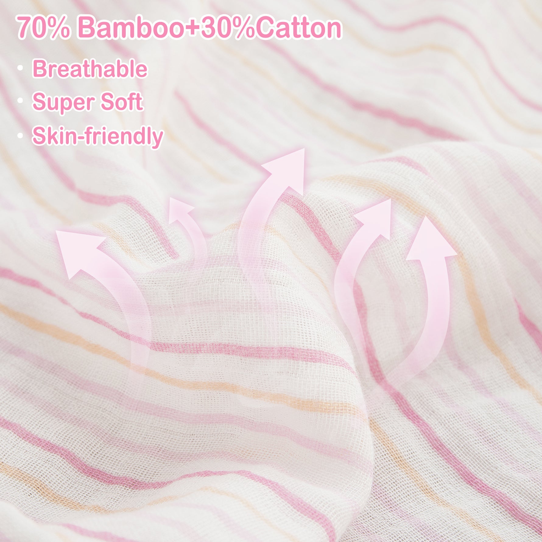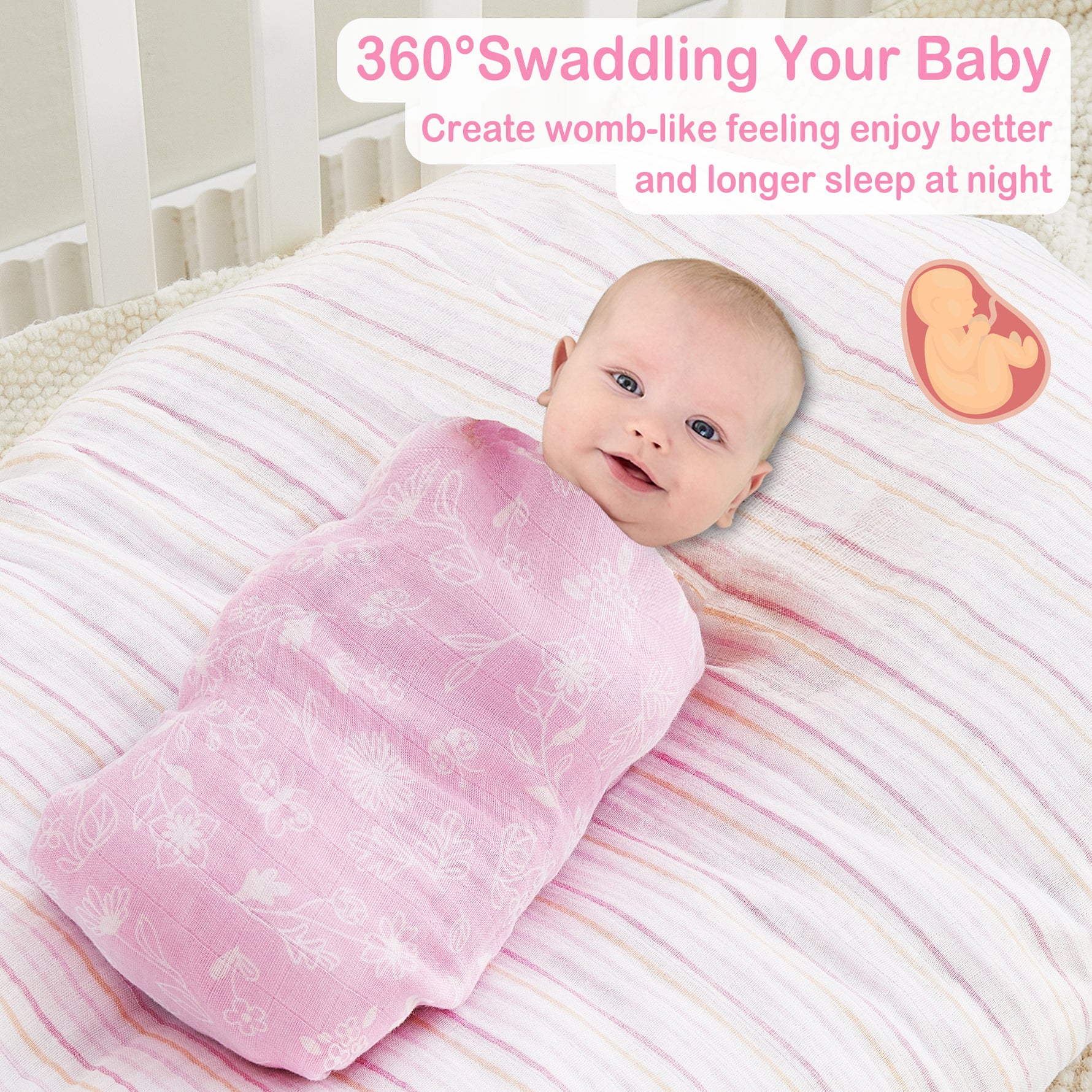 - 【Superior Softness】Swaddle Blanket made of cotton muslin fabric, these blankets keep your little one comfortably snug, preventing overheating and providing the perfect environment for peaceful rest.They get softer with every wash, ensuring a cloud-like feel against your little one's delicate skin.