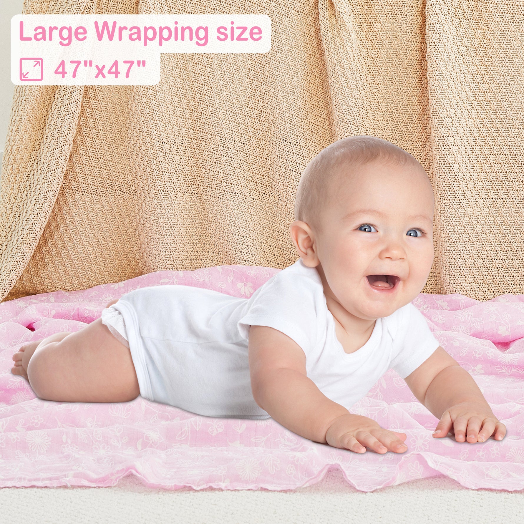 - 【Versatile and Stylish】The set includes two large 47” x 47” (120 x 120 cm)swaddle blankets, providing ample space for wrapping and swaddling. They can also be used as swaddling, changing pad, nursing cover, stroller cover, lightweight swaddling blanket, sun shade, picnic or tummy time blanket and more. The blankets come in unisex solid and patterns, suitable for baby girls and boys alike.