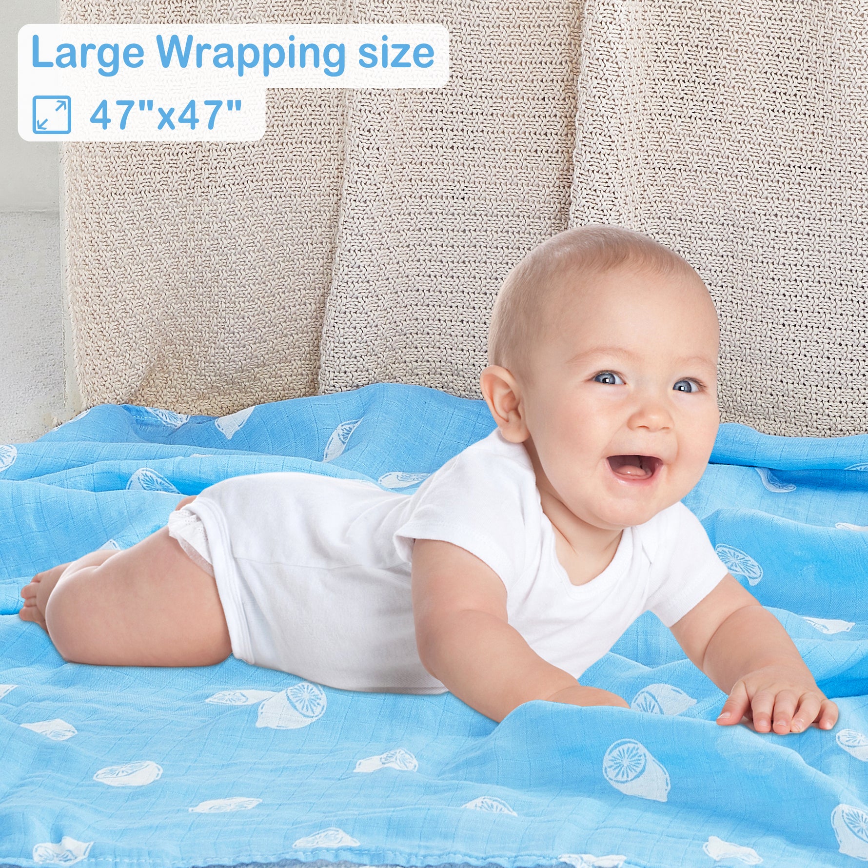 4-Pack Lemon & Leaves 47 x 47 in Muslin Swaddle Blankets for Boys and Girls