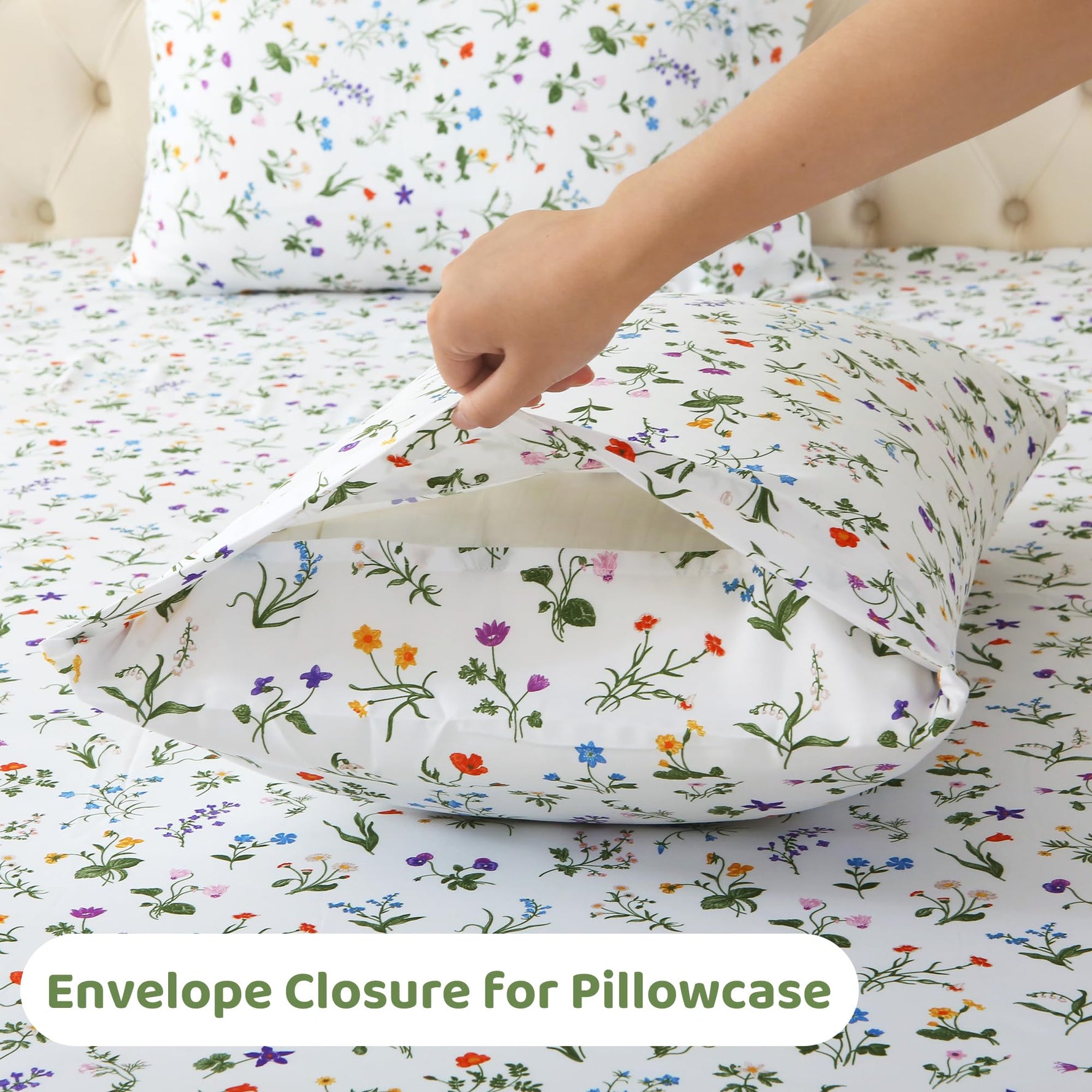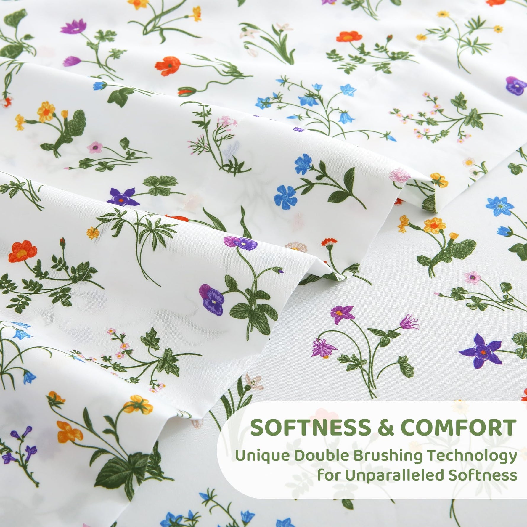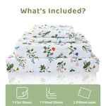 4 Piece Colorful Floral Plants Patterned Bed Sheets Set