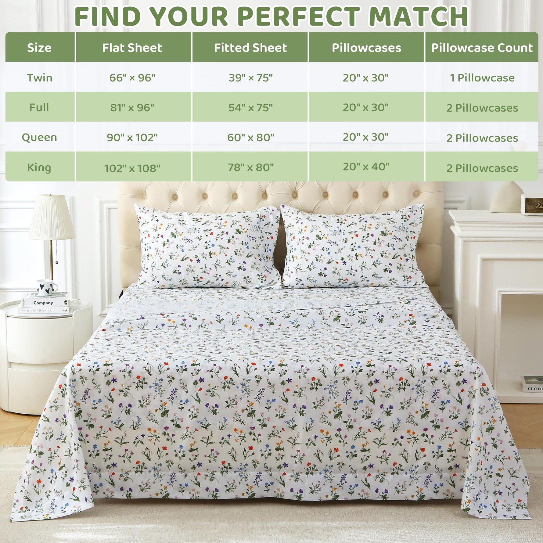 Our 4-piece floral printed vintage full size single bed sheet set includes: