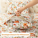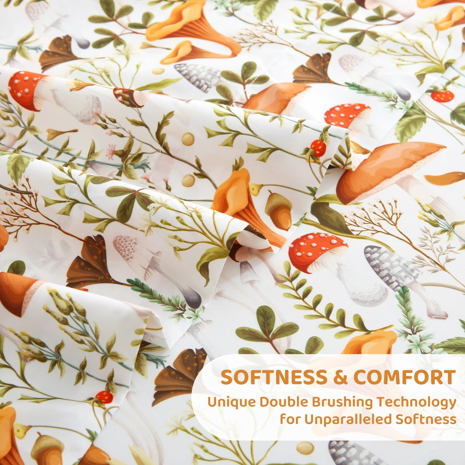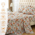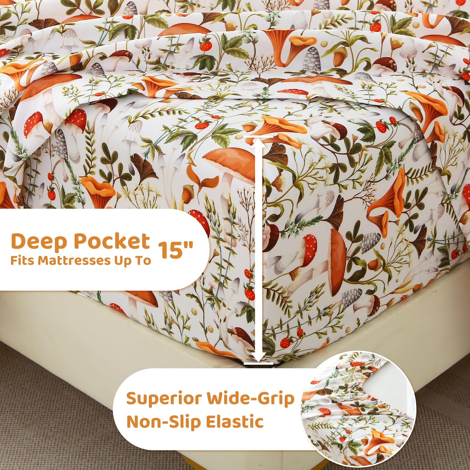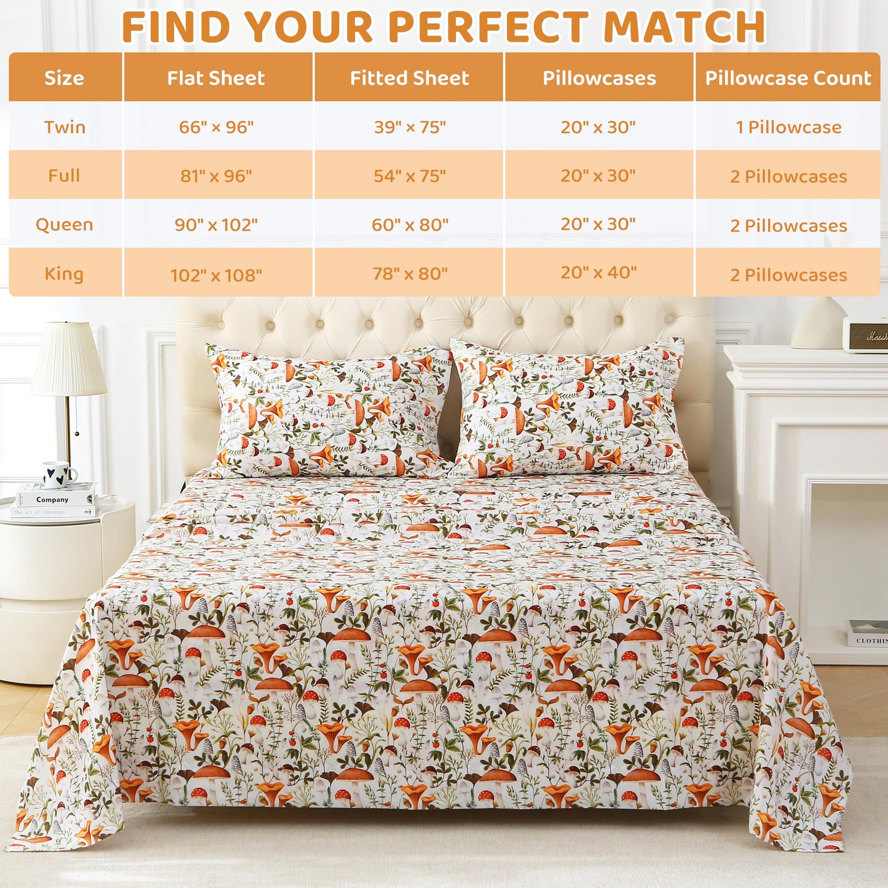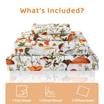 4 Piece Jungle Mushroom Leaves Patterned Bed Sheets Set