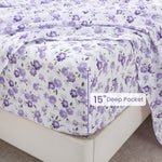 4 Piece Vintage Purple and White Flower Patterned Bed Sheets Set