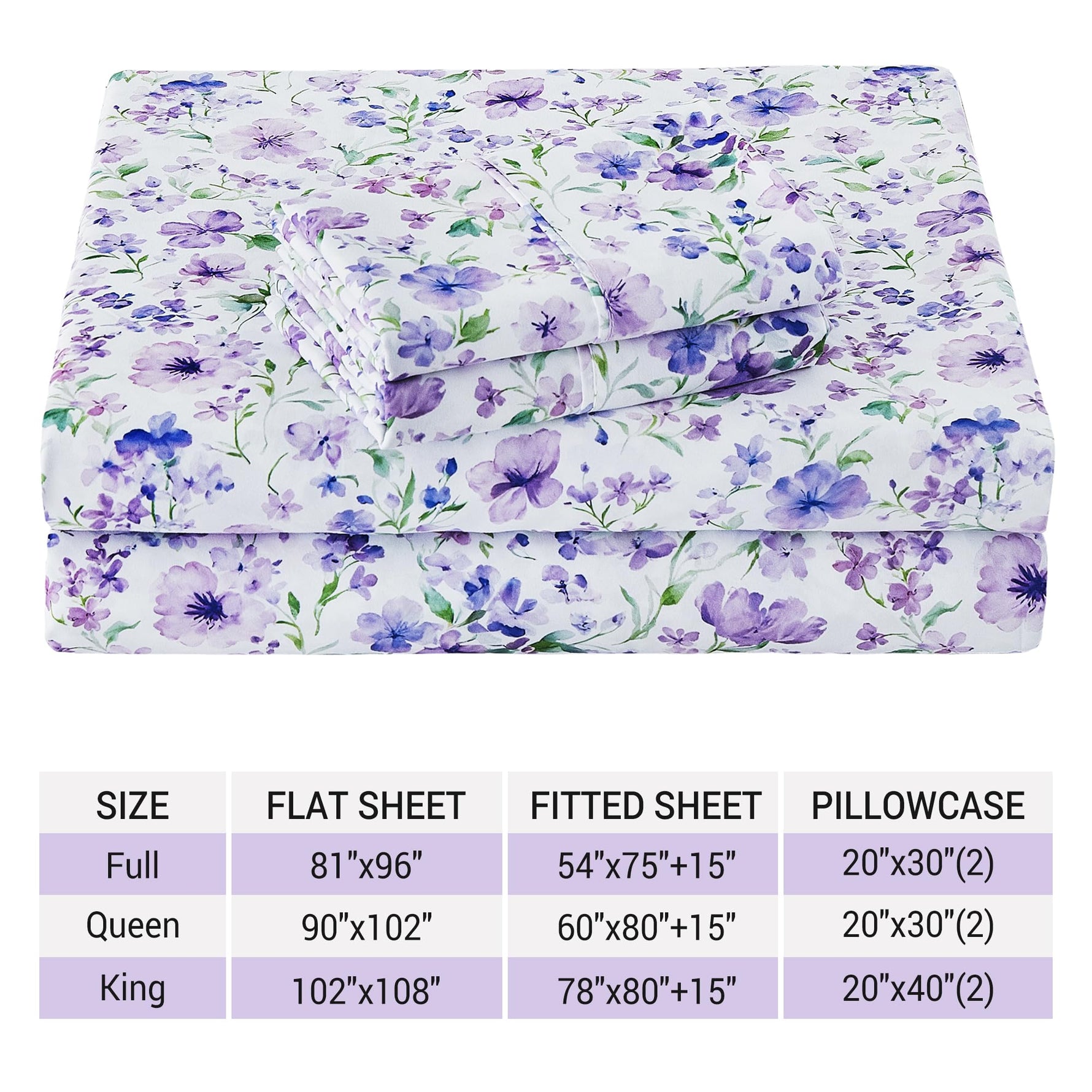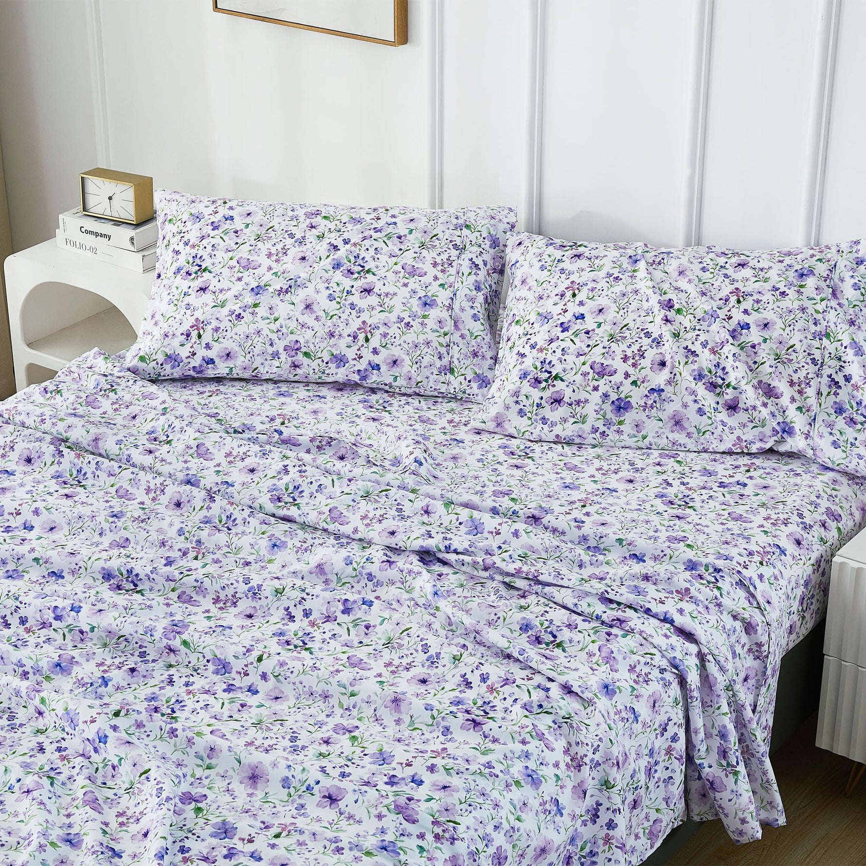 4 Piece Vintage Pueple Lavender Patterned Bed Sheets Set
