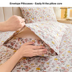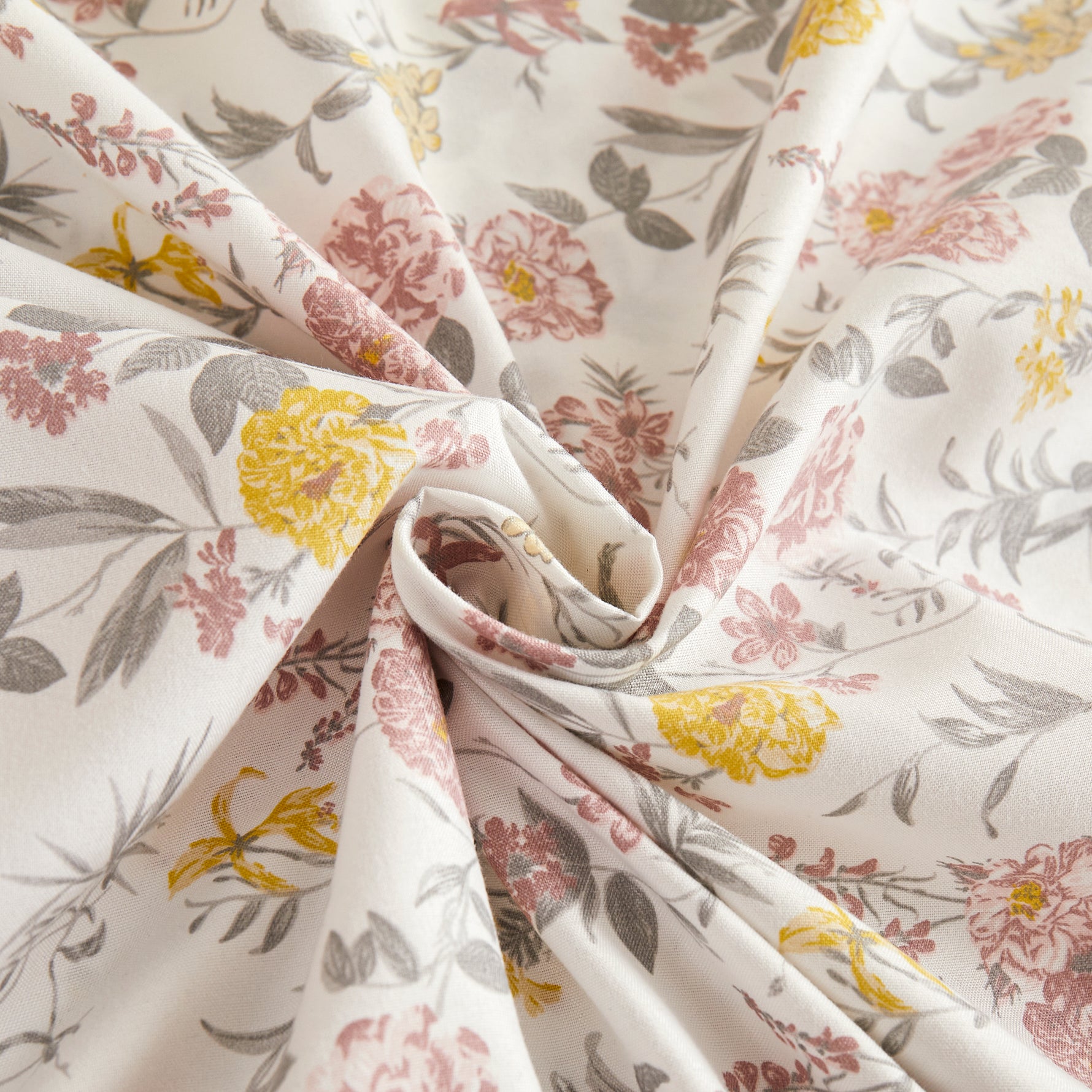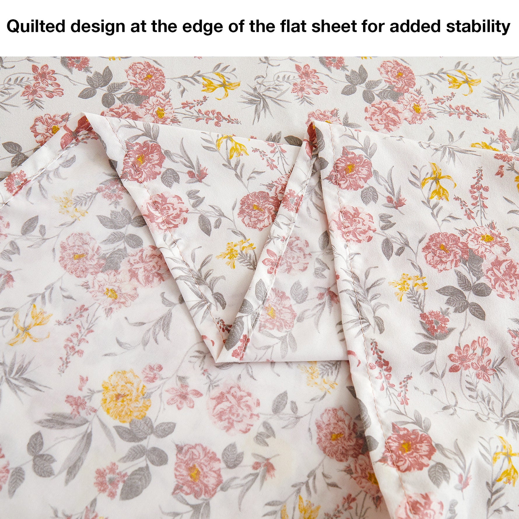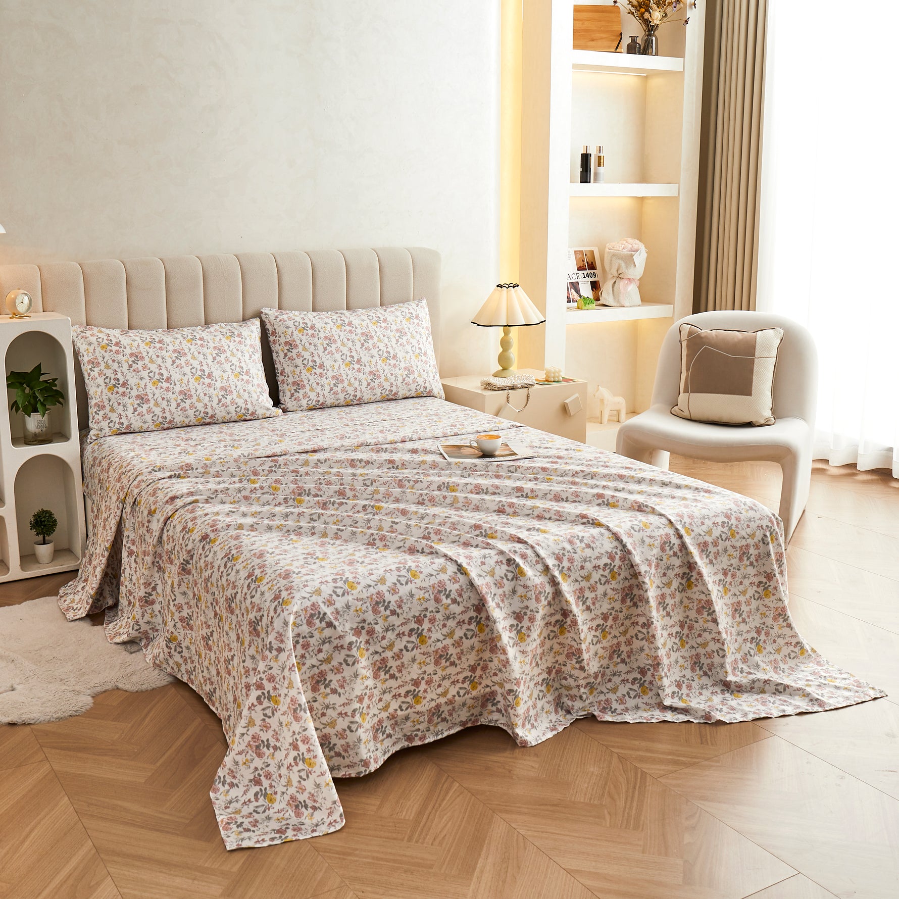 4 Piece Vintage Pink & Yellow Flower Patterned Bed Sheets Set