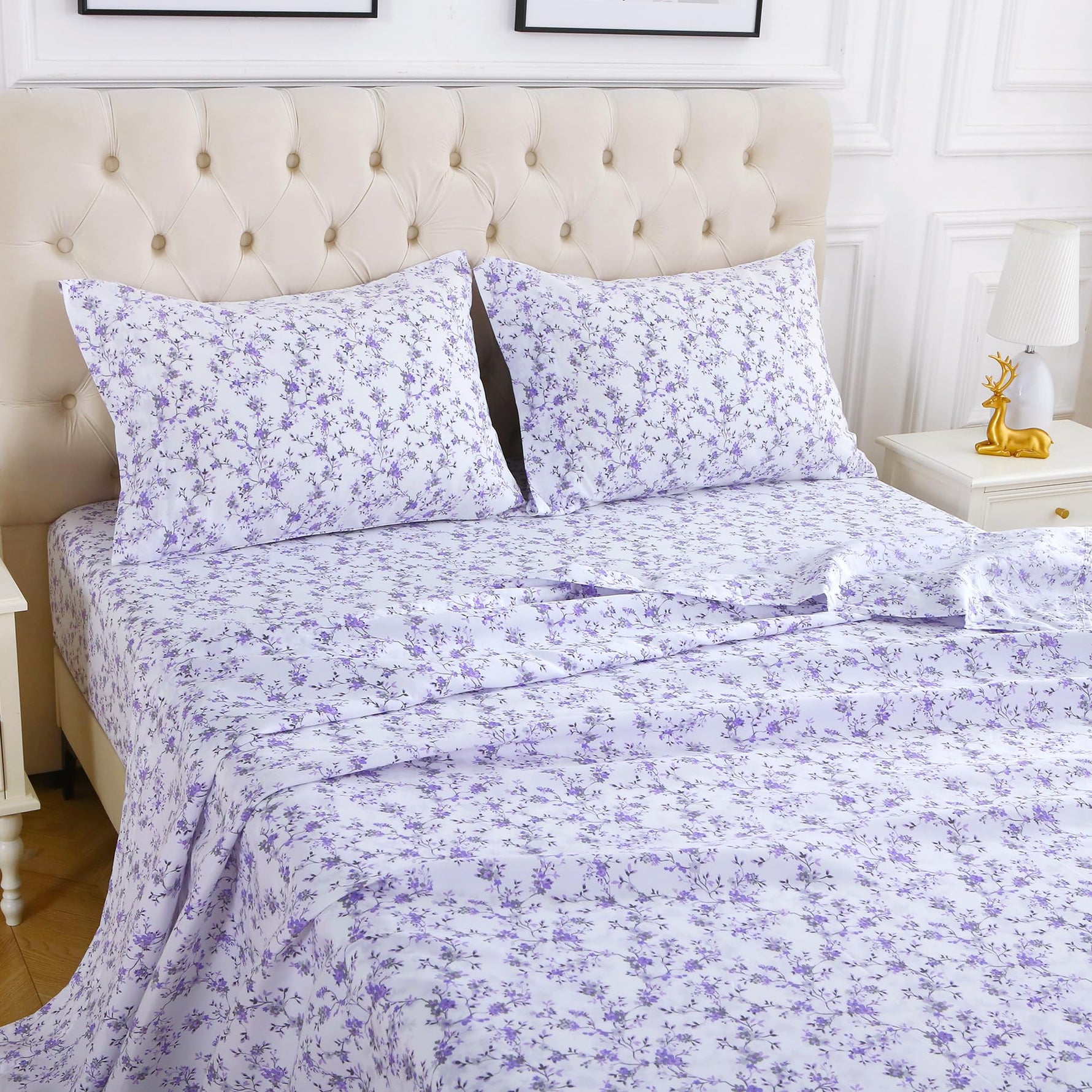 These deep-pocket printed sheets are suitable for all ages and all seasons. The microfiber bedding sheets and pillowcases offer an elegant feel and comfortable texture to enhance the sleeping experience.