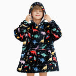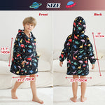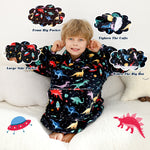 Black Dino & Space Kids Wearable Blanket Toddler Sherpa Sweatershirt Hoodie with Front Pocket