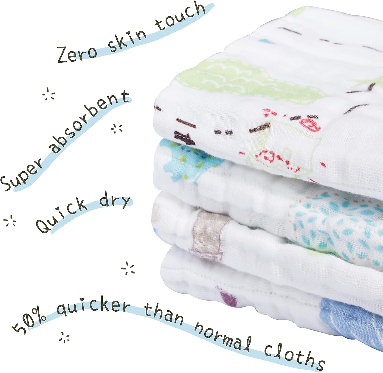 Strong Absorption: Viviland baby muslin burp cloths and washcloths have 6 layers of cotton keeping kids' cloths and skin dry from shedding, teething, and drooling.