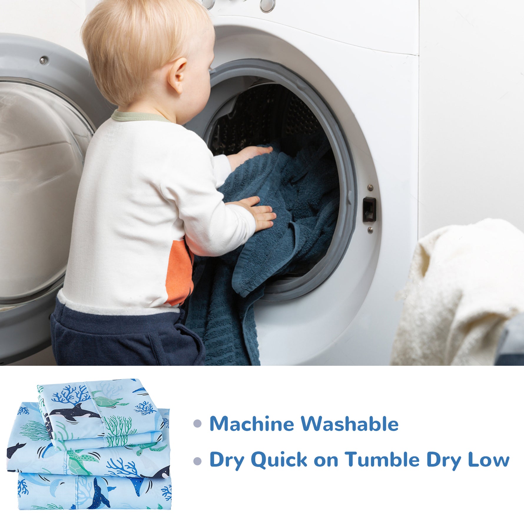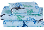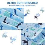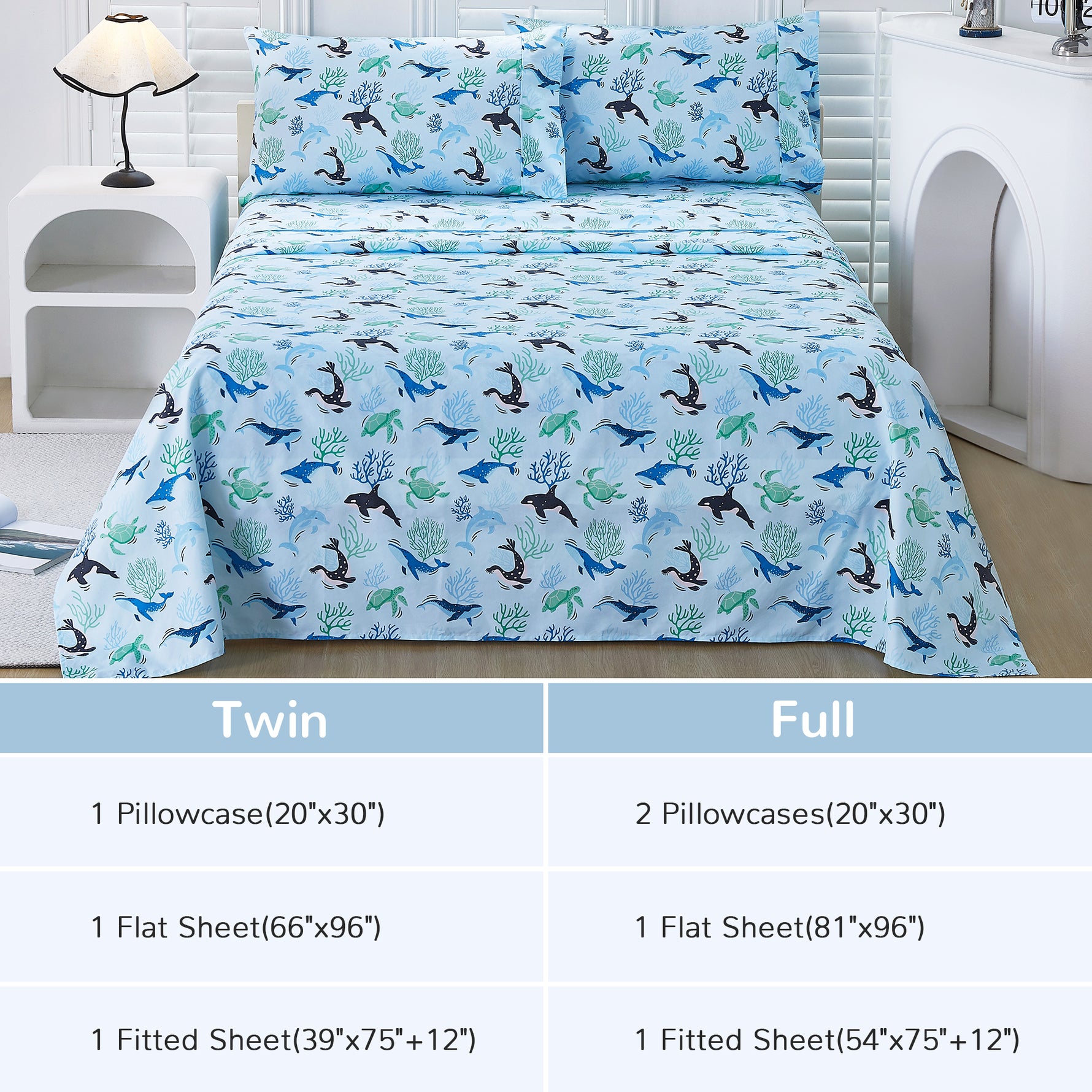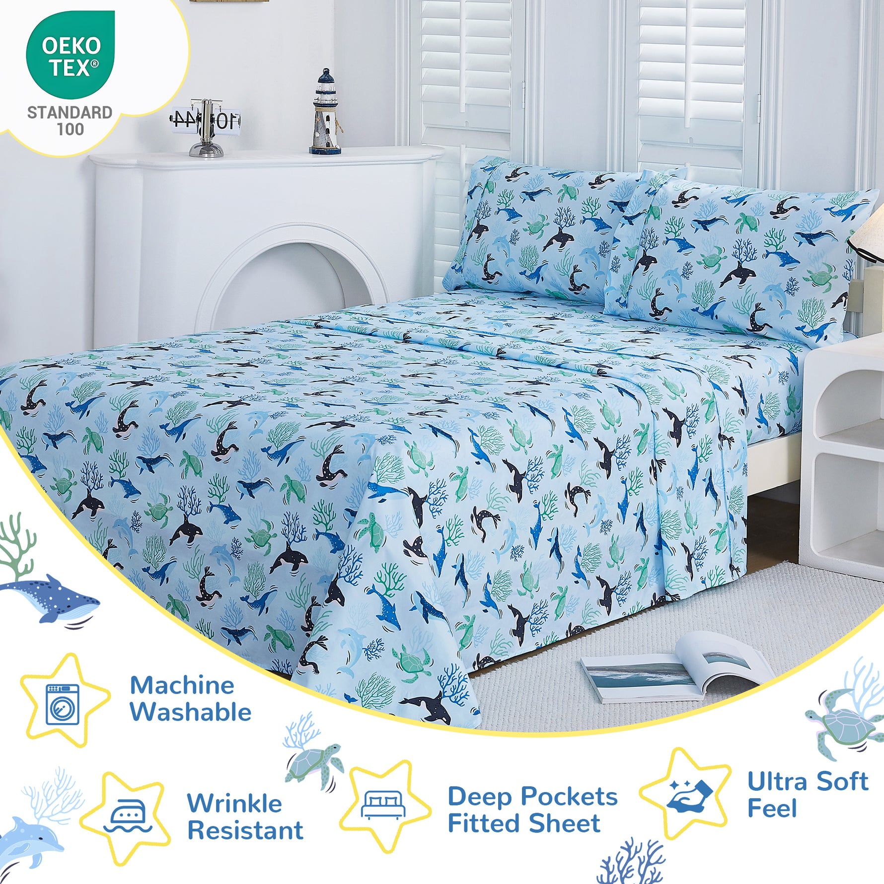 - Cozy Kids Sheet Set: We choose superior materials for kids blue marine life sheet set - Upgraded double brushed microfiber, more soft and comfortable than normal polyester sheets. Brushed microfiber kids sheet is also breathable, wrinkle resistant and long lasting, keeping kids girls boys cozy night after night. Our light blue with marine life seagrass pattern kids sheet and pillowcase set (fitted sheet included) is a good solution for kids girls and boys single bed