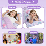 - Easy to Roll and Carry: With hook and loop closures and handles, your girl can easily open, roll up, and transport their nap mat/sleep mat wherever they go; plus, the built-in name tag of the girl's slumber bag helps with identification