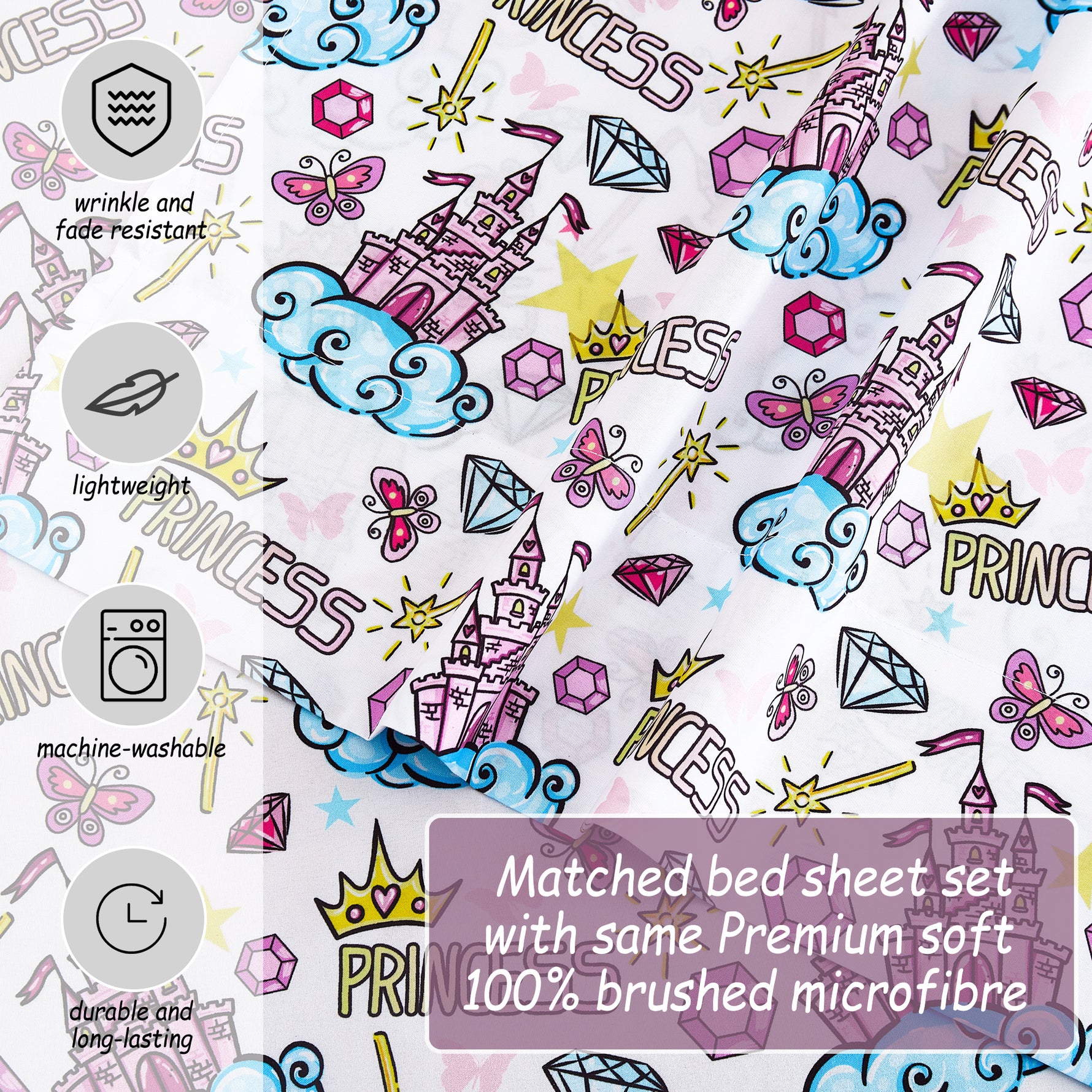 【Castle Diamond design】 The kids sheet sets are designed adorable pattern surround Castle Diamond . This fun and playful girls sheet set is going to make your kids eager for bed time