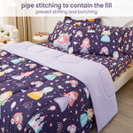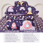 - 8 Pcs Girls Full Bedding Set: Includes 1 comforter (76"x86"), 1 flat sheet (81"x96"+4"), 1 fitted sheet (54"x75"+15"), 2 envelop pillowcases (20"x30"), 2 pillow shams (20"x26"+2") and 1 decorative toy pillow. The bedding comforter set for girls keeps it fits the body effectively.
