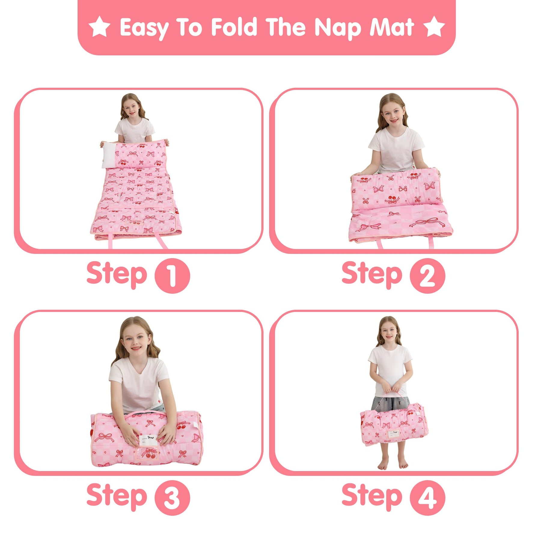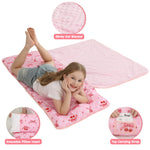 - The Right Size: Sized at 50"*20" with a 41"*32" blanket, this girls pink cherry kindergarten nap mat/ slumber bag with a removable pillow and blanket is ideal for kids aged 3-6, ensuring a comfortable and snug fit
