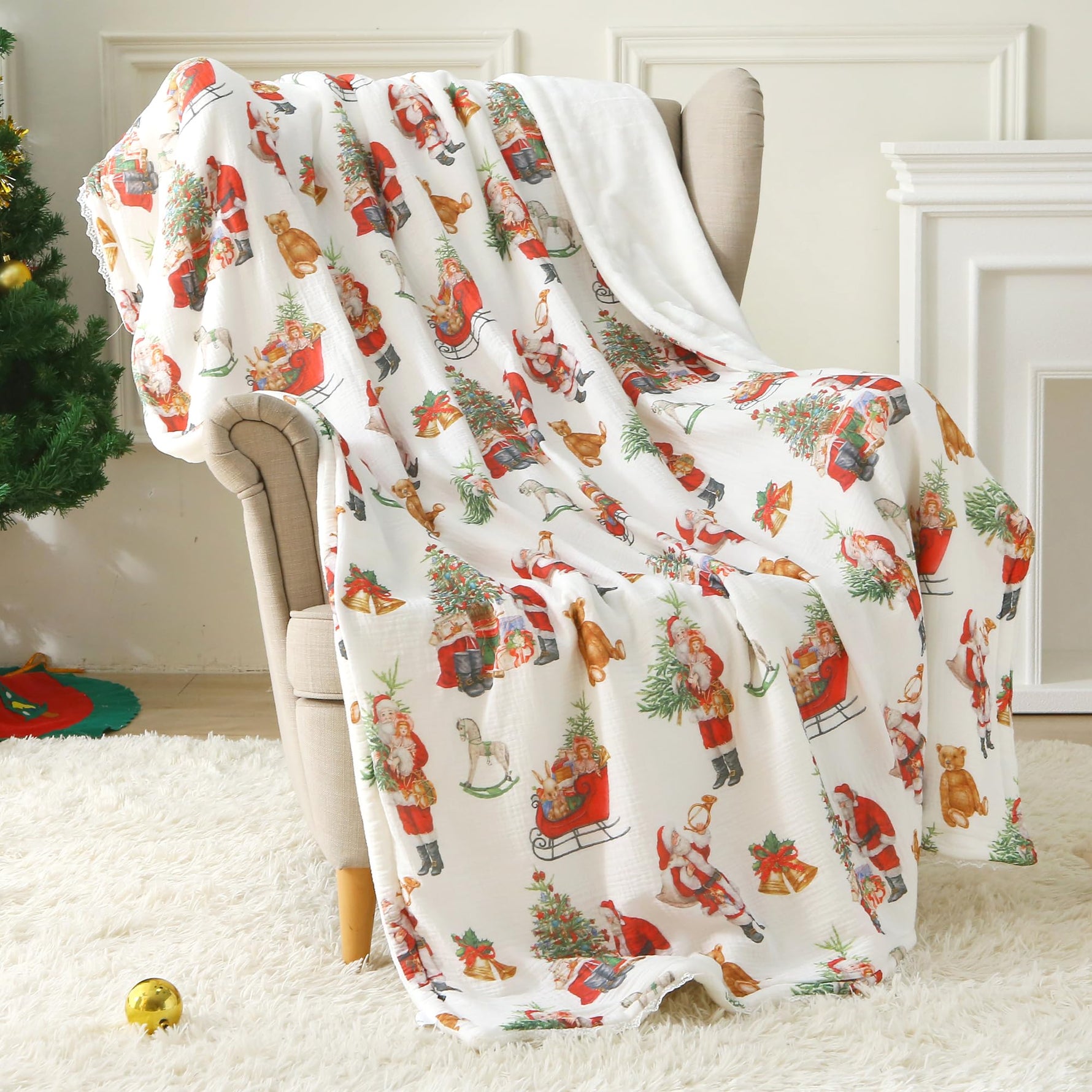 Christmas Throw Blanket Reversible Muslin Blankets 50x70 inch