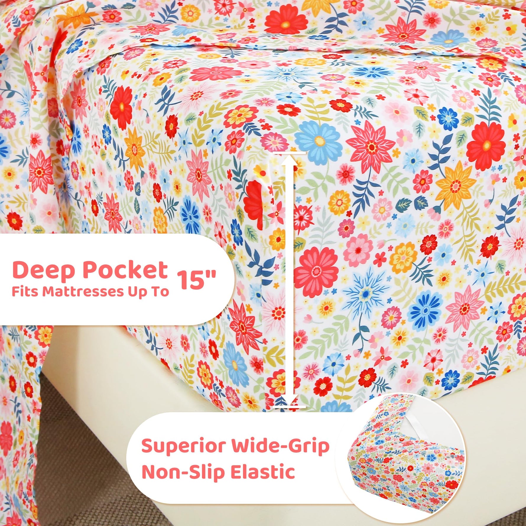 Our 4-piece floral printed vintage twin size single bed sheet set includes:
