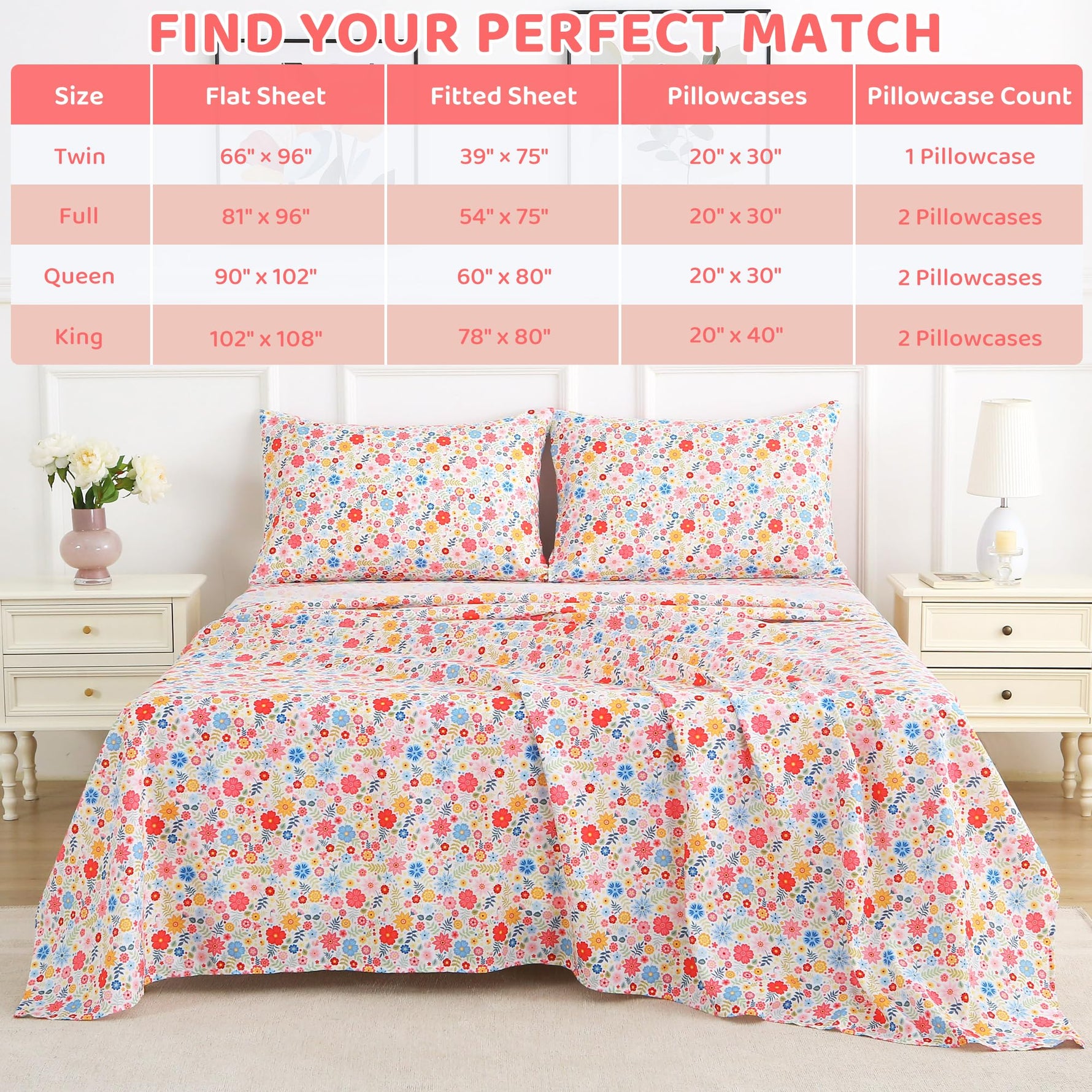 Our 4-piece floral printed vintage full size single bed sheet set includes: