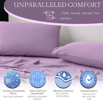 Cooling Full Double Sheets, 100% Viscose Derived from Bamboo with Elastic Corner Straps, Light Plum Cold Siky Sheet & Pillowcase Sets for Hot Sleepers