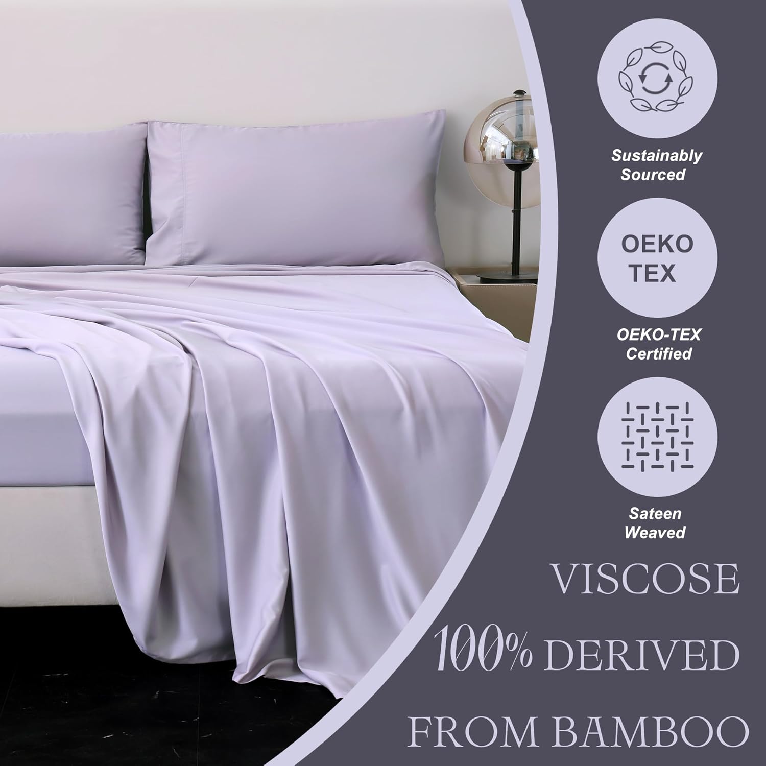 Cooling Full Sheets, Bamboo Viscose with Elastic Corner Straps, Lilac Cold Siky Sheet & Pillowcase Sets for Hot Sleepers Visit the Viviland Store