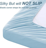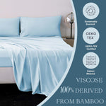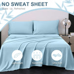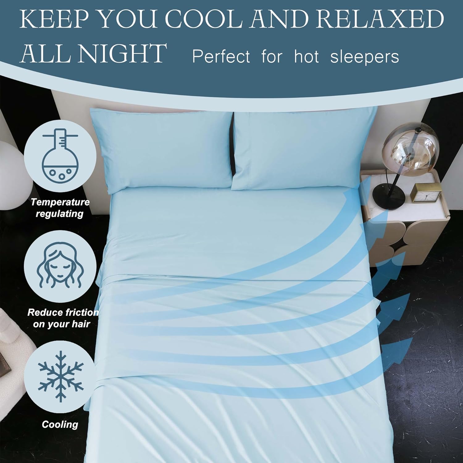 Cooling Full Sheets, Bamboo Viscose with Elastic Corner Straps, Sky Blue Cold Siky Sheet & Pillowcase Sets for Hot Sleepers