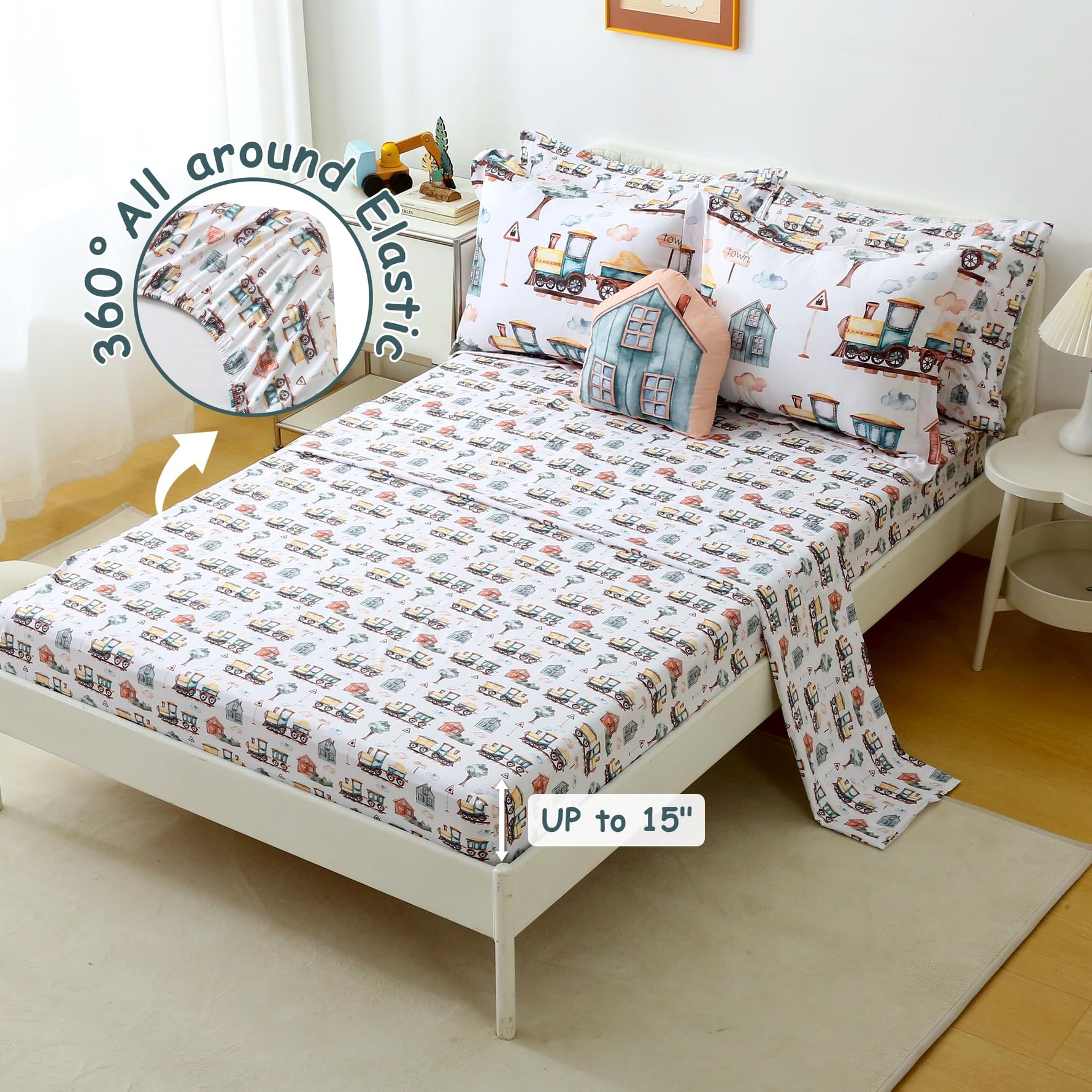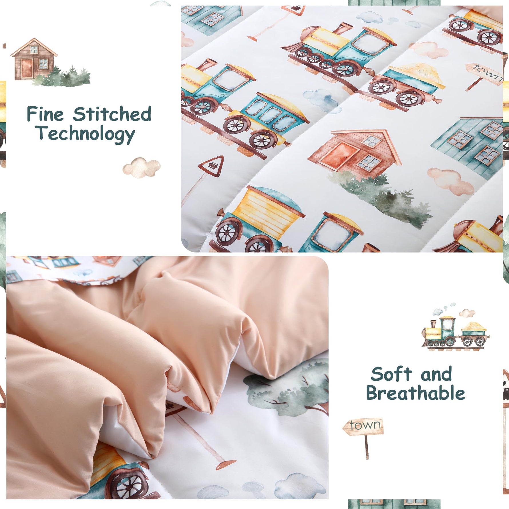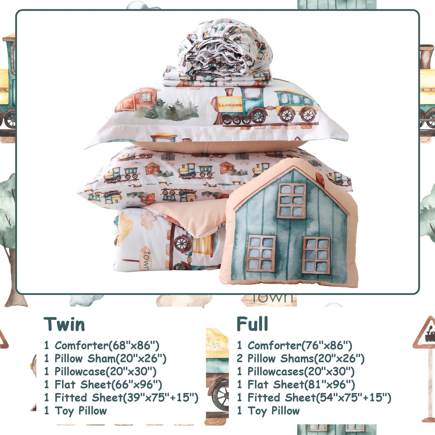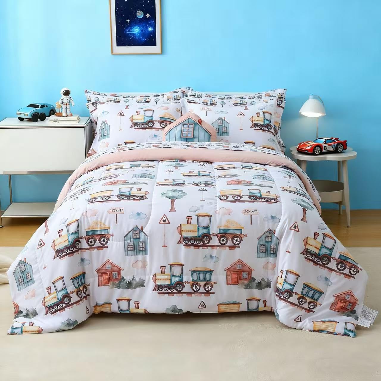 Country Train Town 6/8 Pcs Comforter Sets for Boys Kids