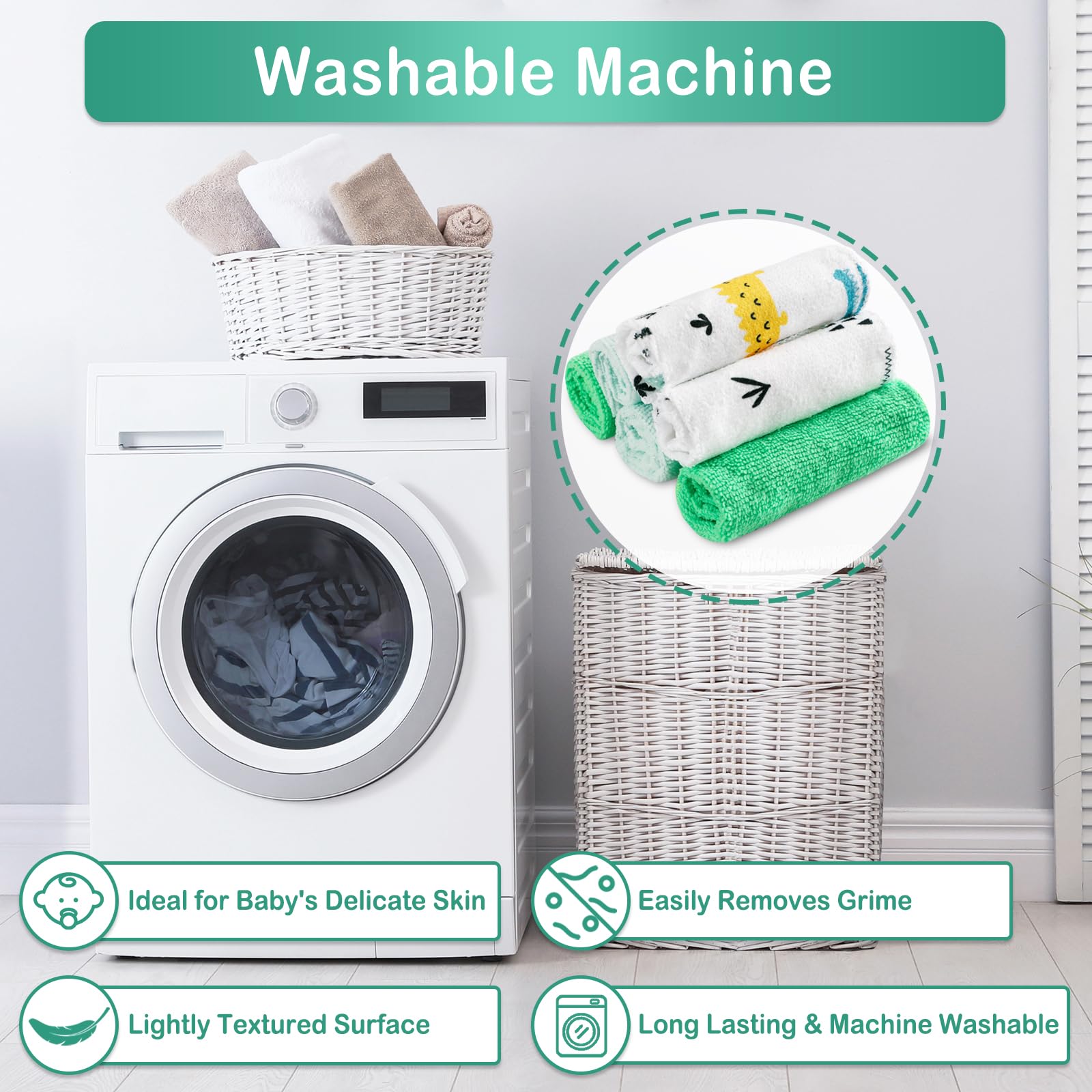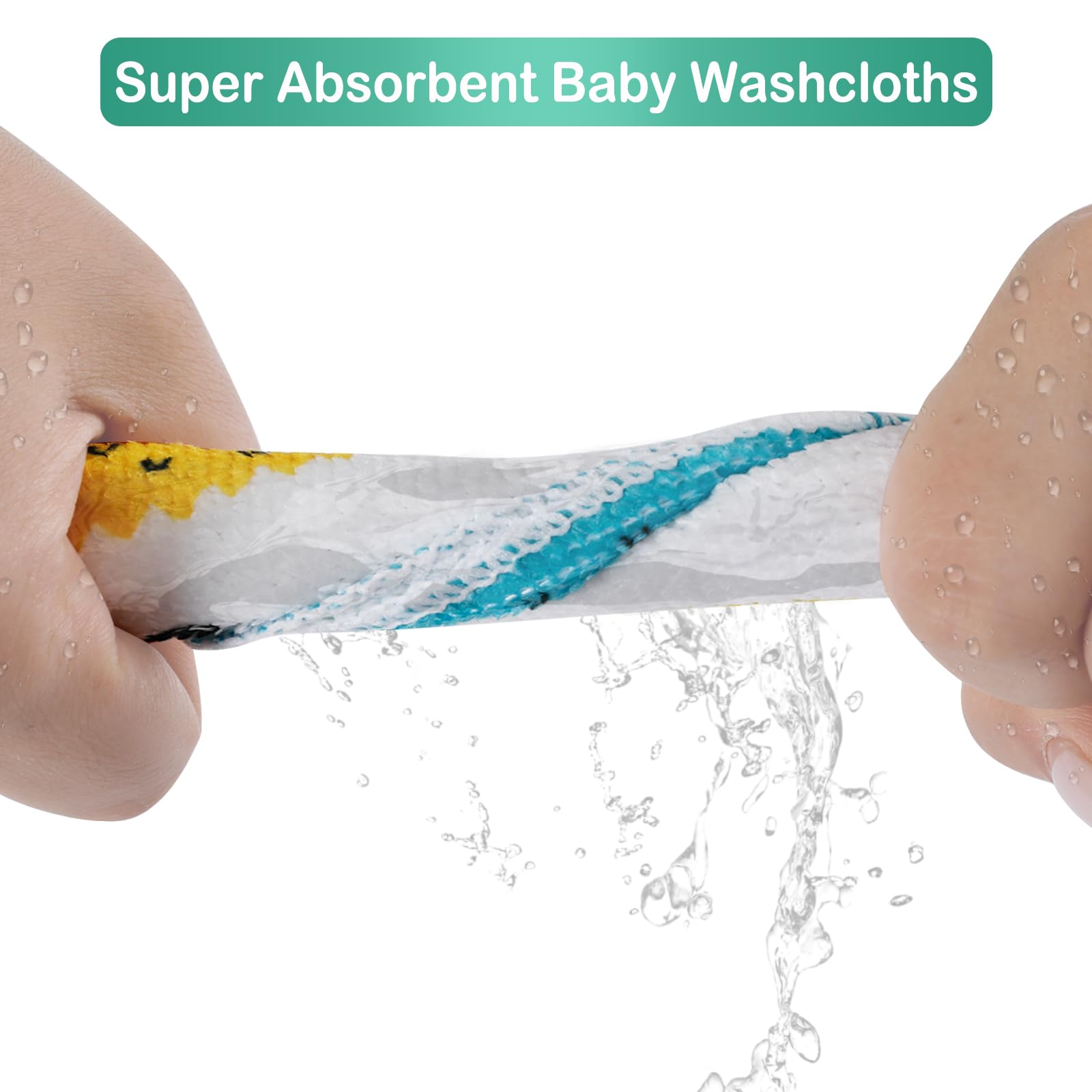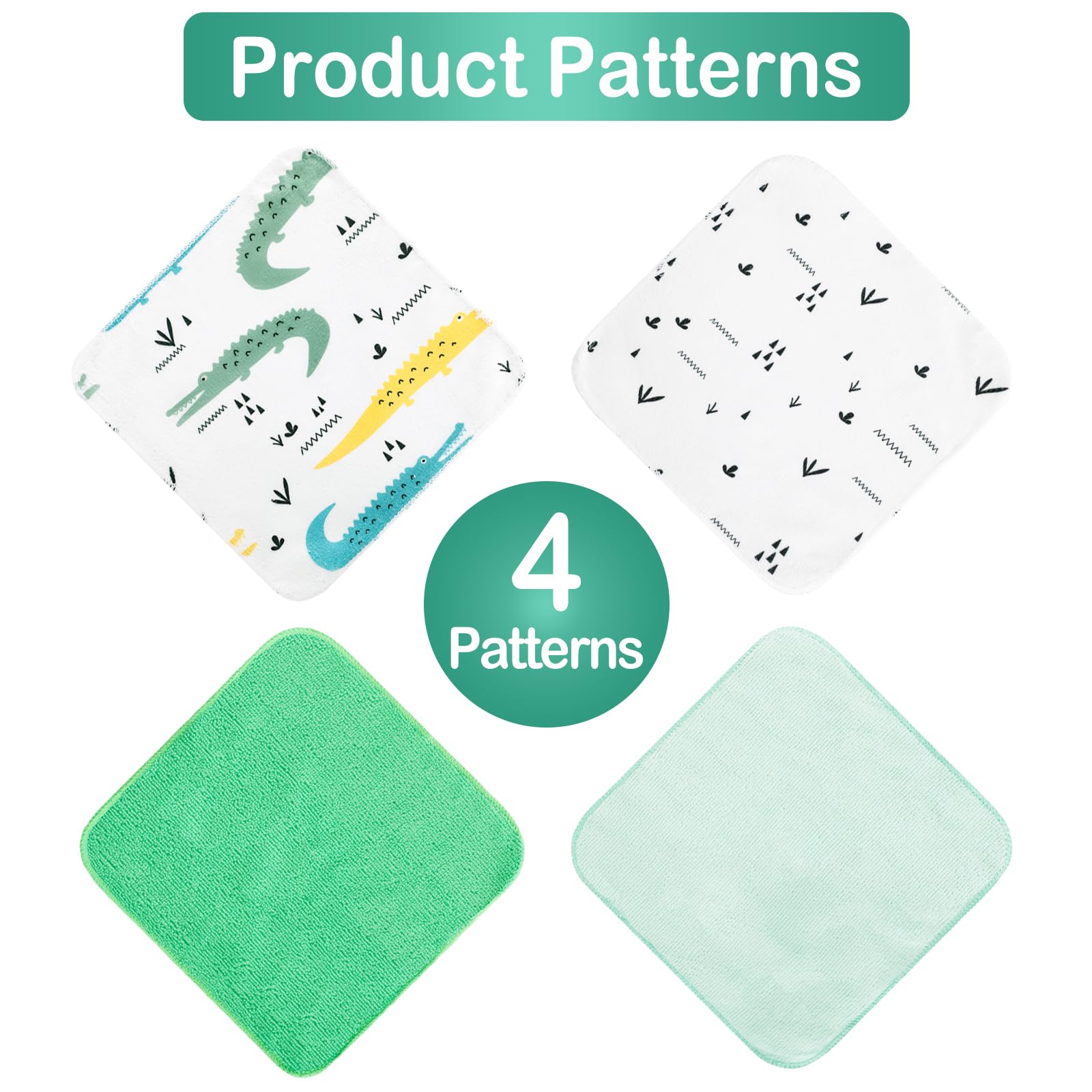 • 【Perfect 24pcs baby washcloths】24pcs 9''x9'' baby wash cloths fit from newborn to toddler(0-6 years). Our baby washcloths are soft and breathable, and gentle on baby's skin. The cute crocodile design, combined with the forest-like green, makes the baby feel as if they were in an animal world