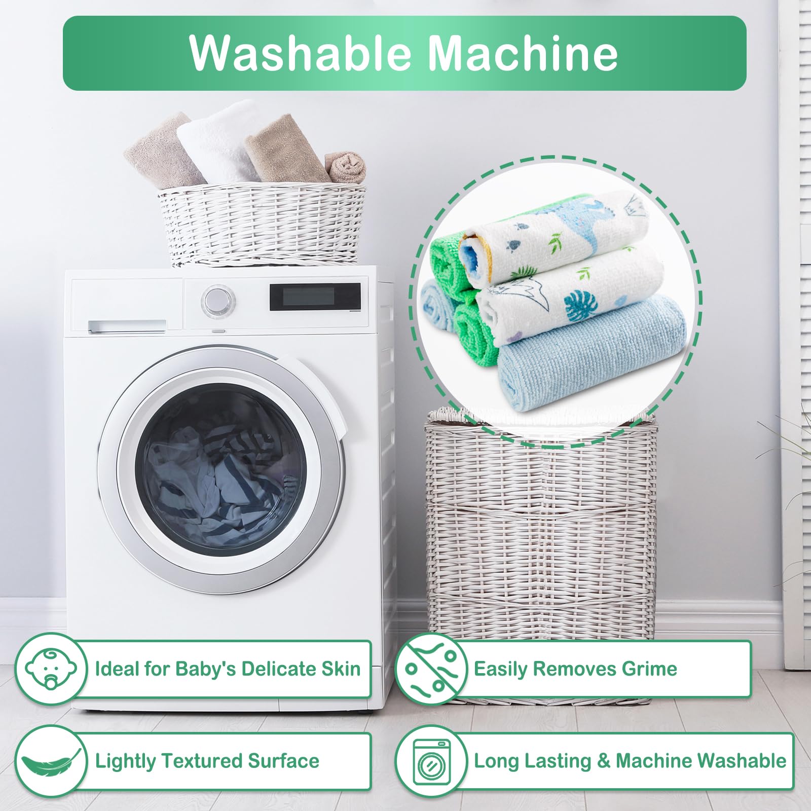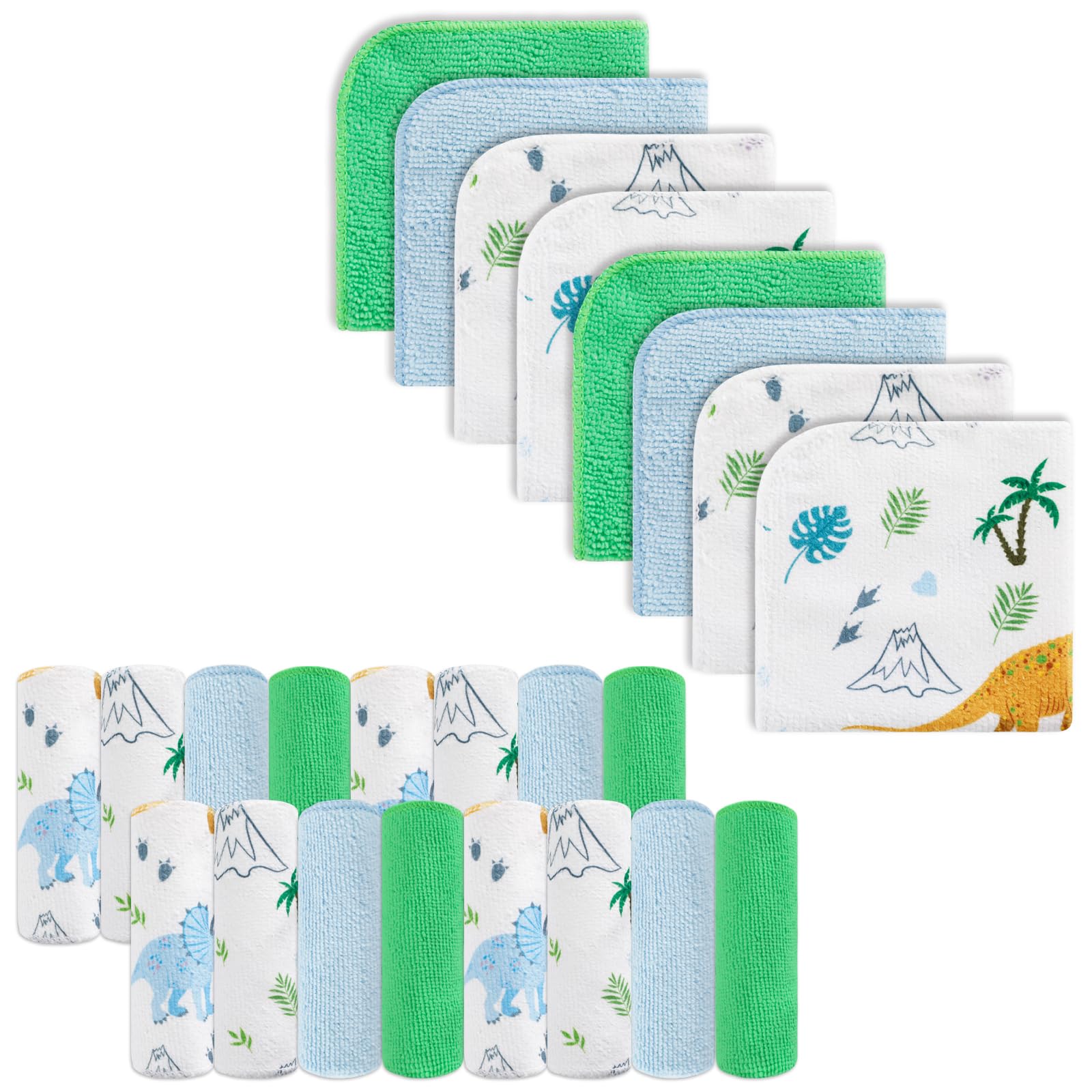 • 【Perfect 24pcs baby washcloths】24pcs 9''x9'' baby wash cloths fit from newborn to toddler(0-6 years). Our baby washcloths are soft and breathable, and gentle on baby's skin. The vivid adult dinosaurs and the thick forest are sure to win the hearts of both parents and children