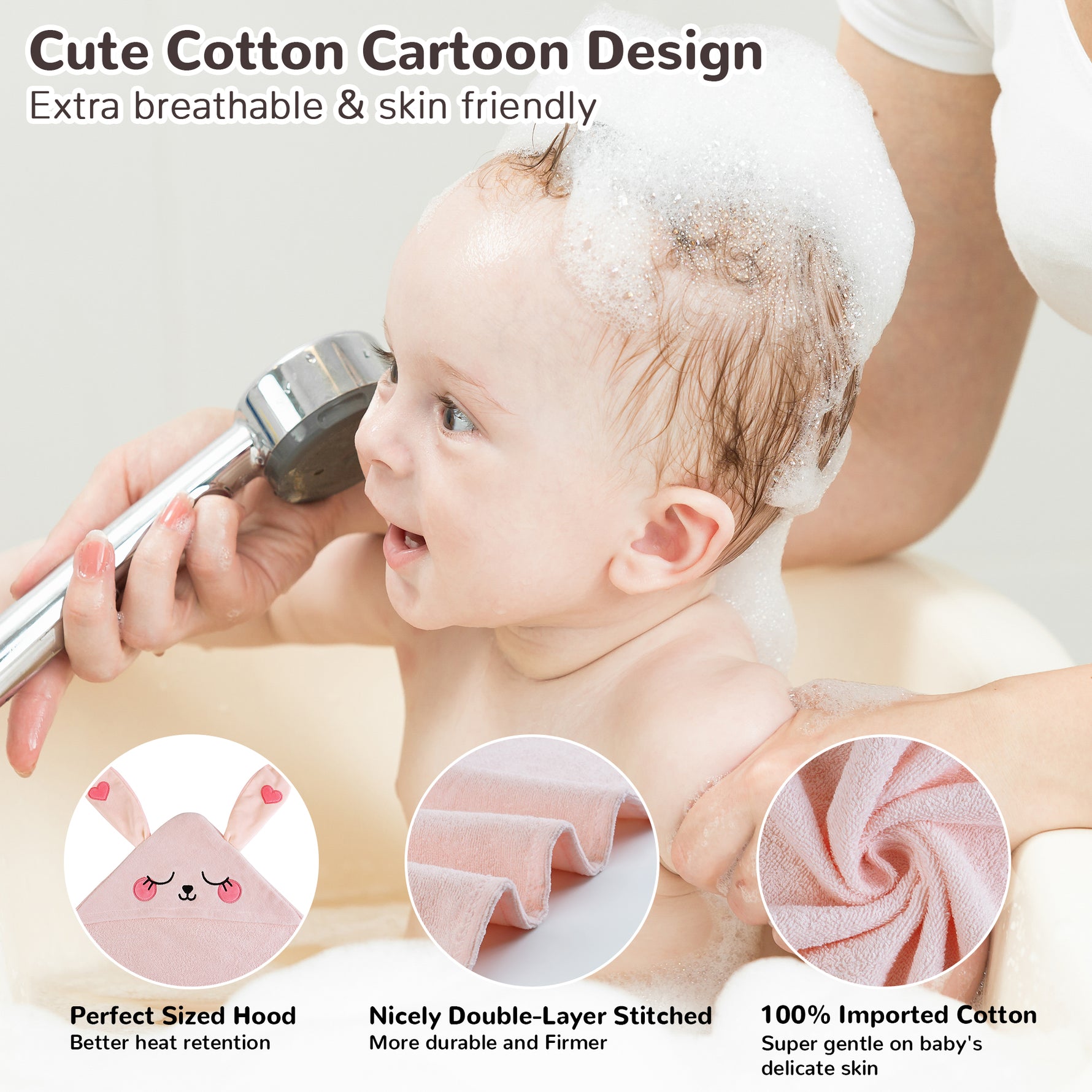 - Gentle on Baby's Skin: Wrap your little one in the softest, 100% cotton material that soothes their delicate skin after bath or swim time. Our baby towels with hood are gentle and cozy – perfect for babies with sensitive skin.