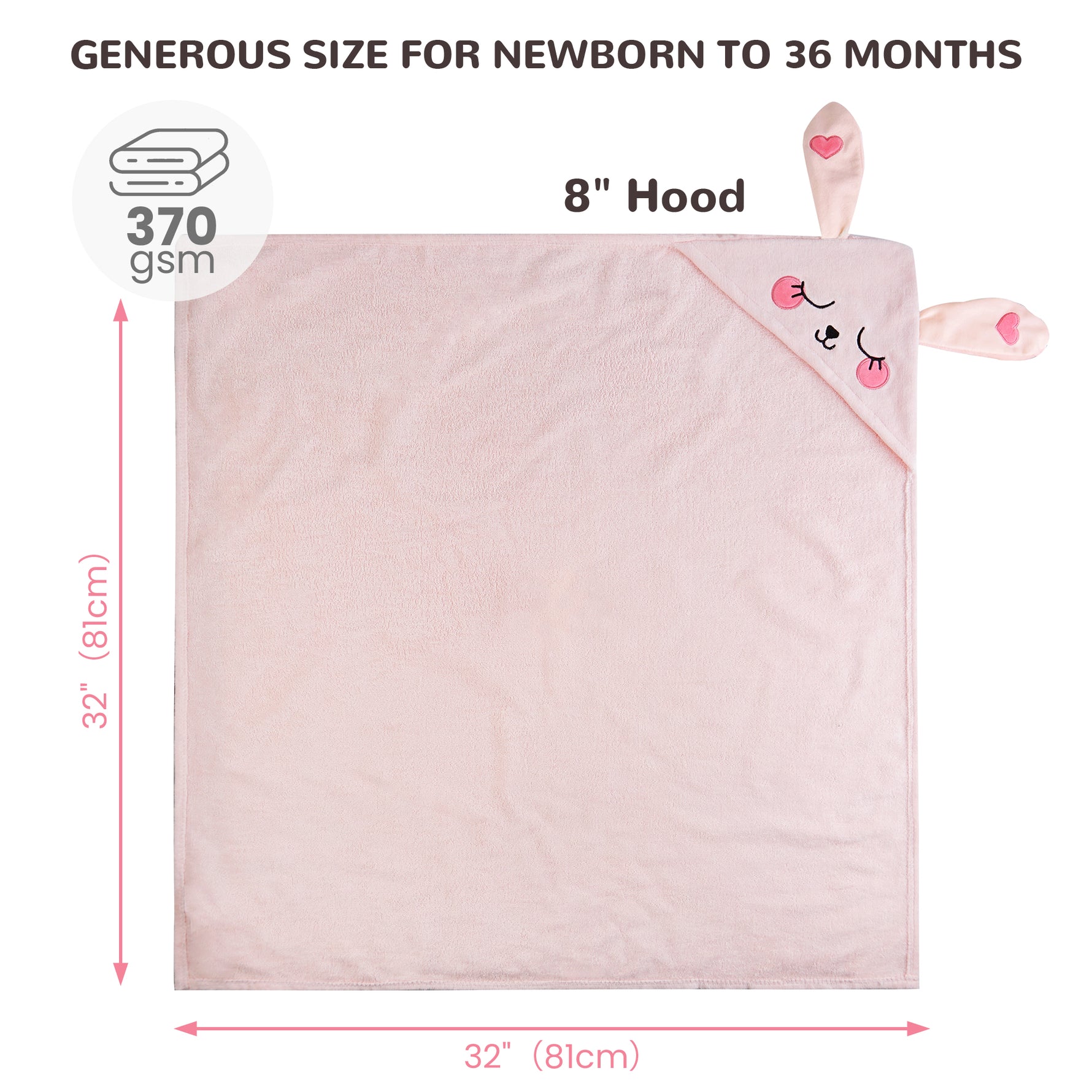 (Dog & Pink Rabbit) 2 Pack Cotton Hooded Baby Towels, Extra Thick and Absorbent, 32" * 32"