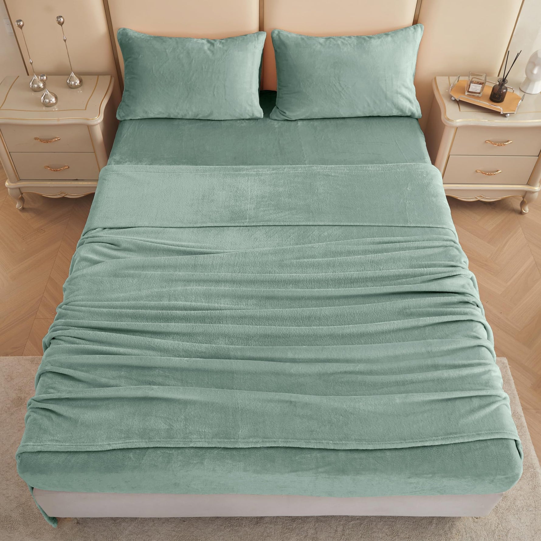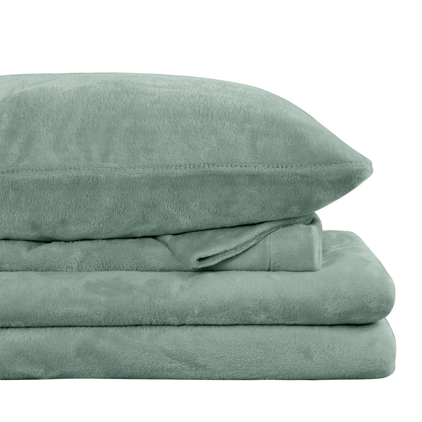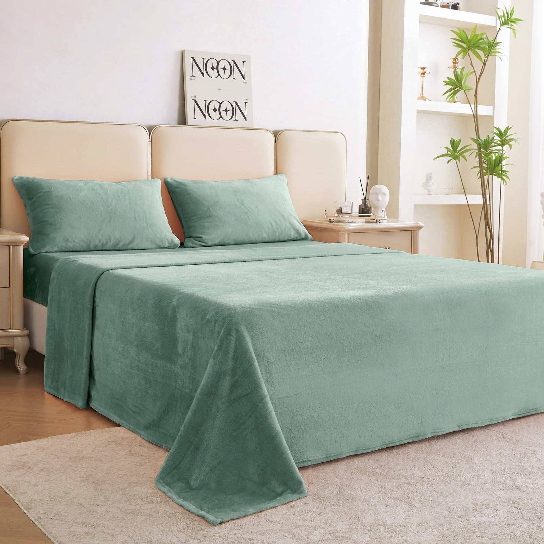 Emerald Green Printed Micro Fleece Bed Sheet Set