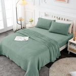 Covers four sizes (twin/full/queen/king) with 3-piece or 4-piece sets, including a fitted sheet, flat sheet, and pillowcases. The 15-inch deep-pocket fitted sheet features all-around elastic, fitting the mattress perfectly without slipping, ensuring a restful sleep.