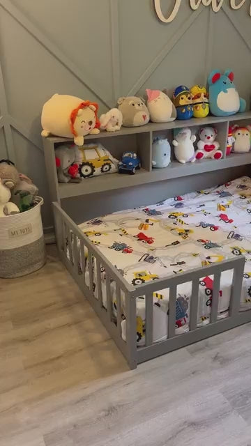 8PCS KIDS GREY FULL BEDDING SET: Full size bed in a bag with unique construction pattern includes 1 comforter (76"x86"), 1 flat sheet (81"x96"), 1 fitted sheet (54"x75"+12"), 2 pillowcase (20"x30"), 1 decorative toy pillow and 2 pillow shams (20"x26")