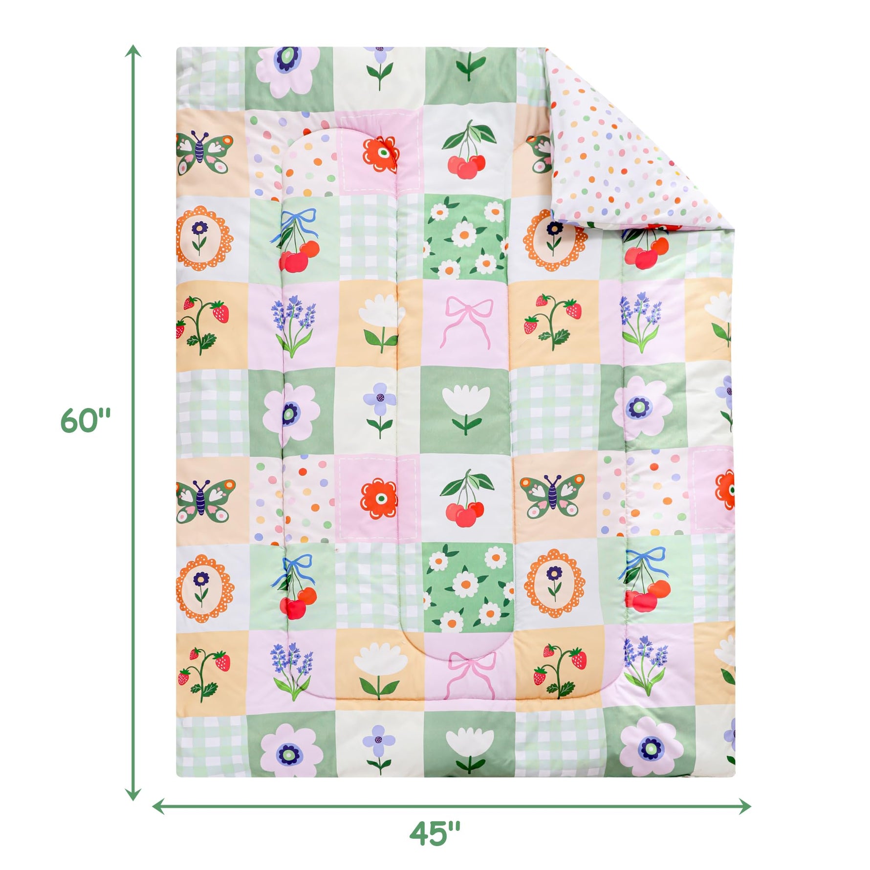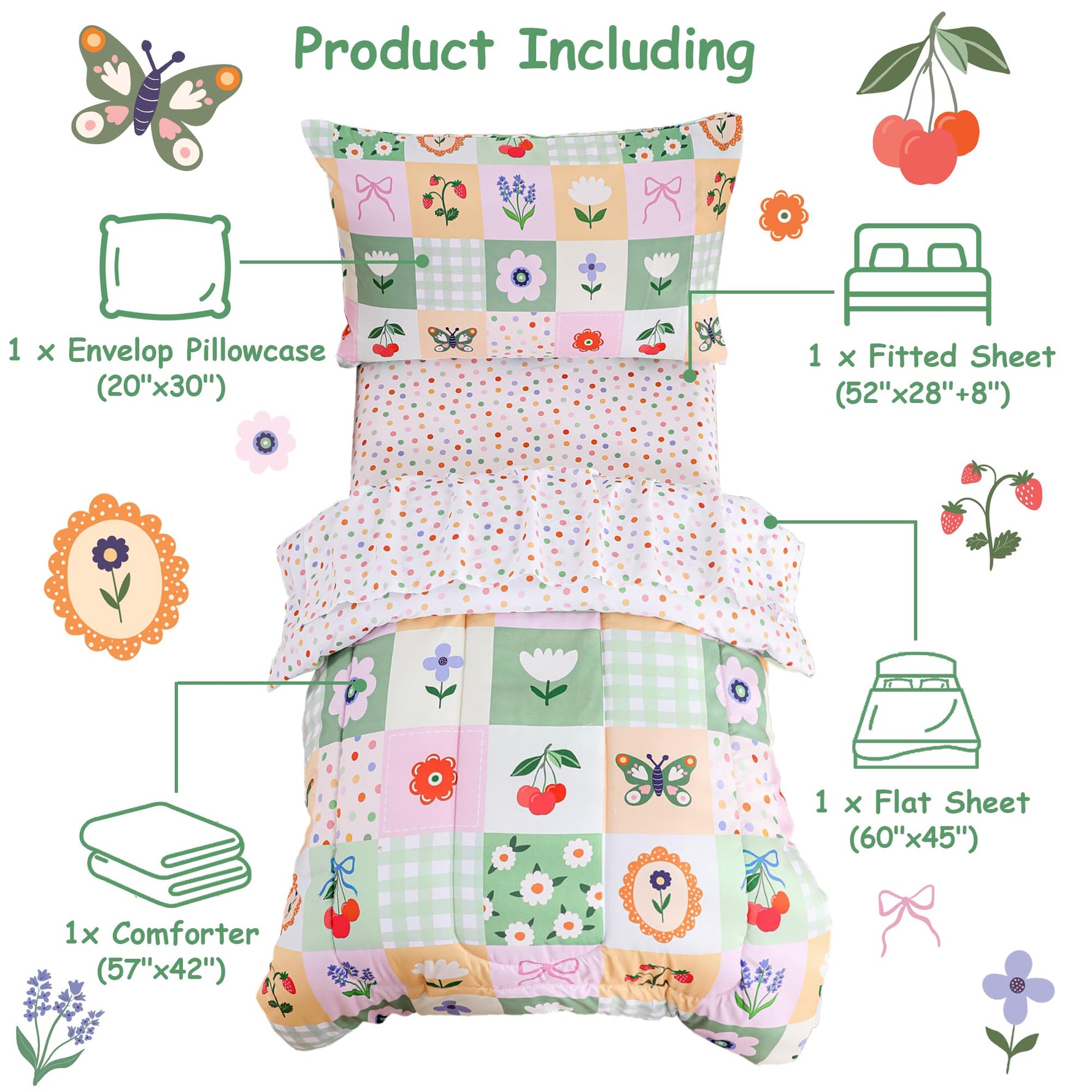 Includes: Comforter (42"x57"), flat sheet (45"x60"), fitted sheet (28"x52") + pillowcase (20"x30") – instant nursery upgrade