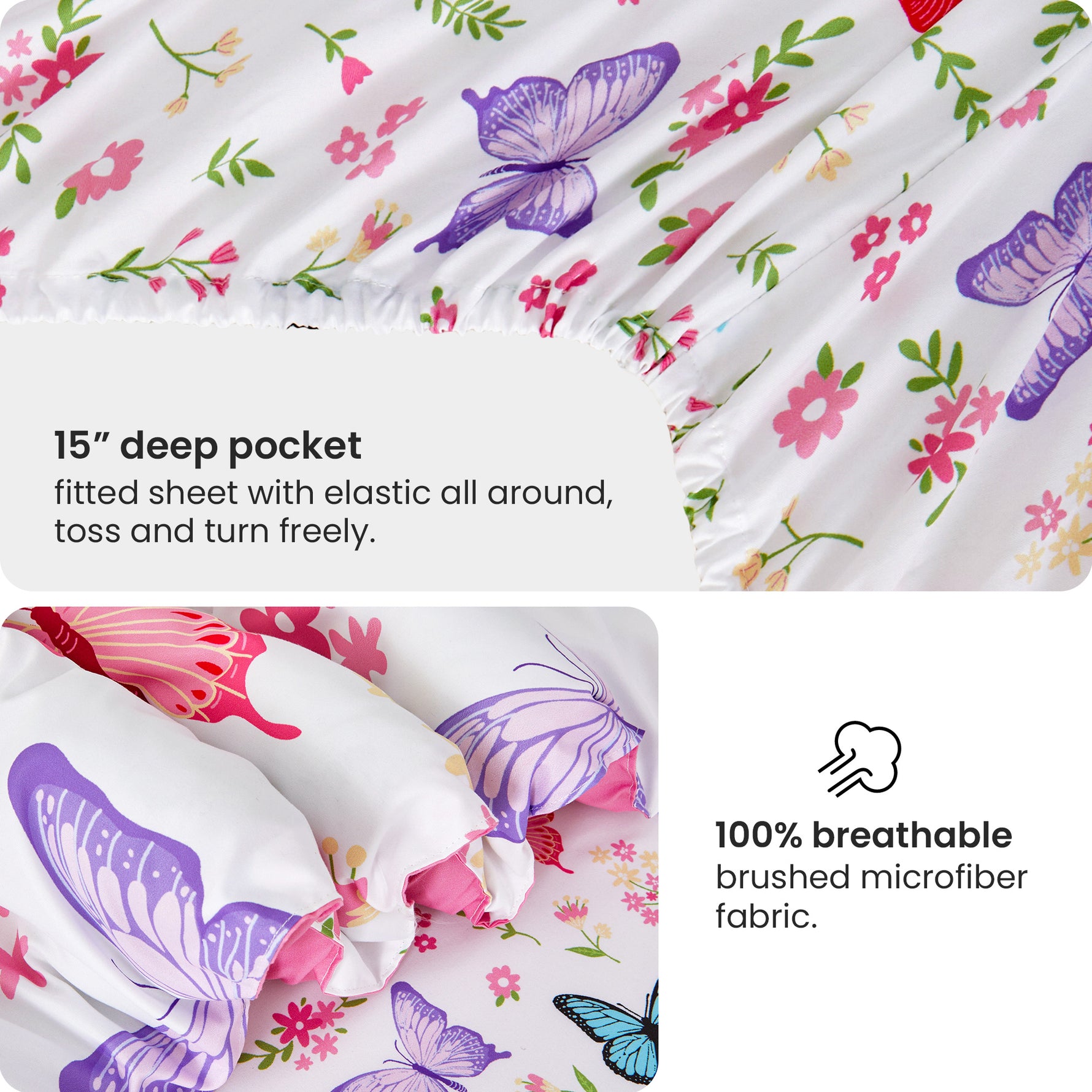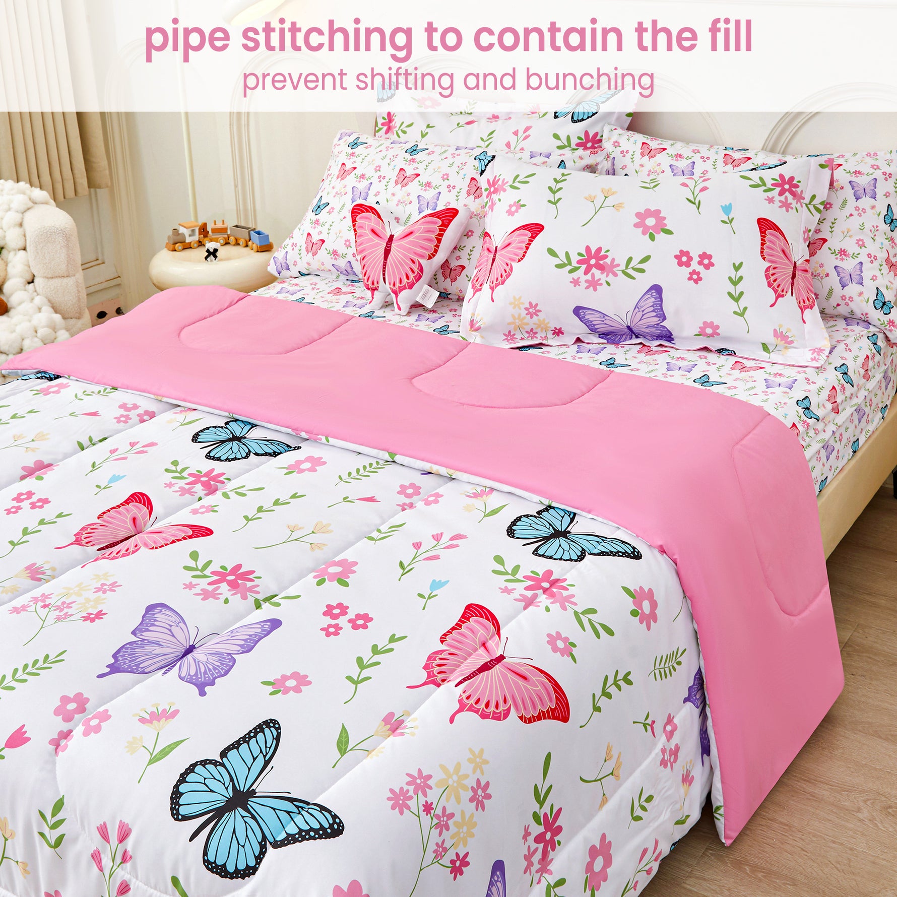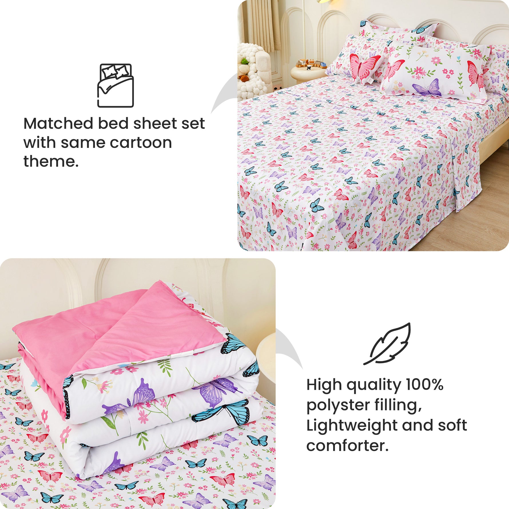 Flower Butterfly 6/8 Pcs Comforter Sets for Girls Kids