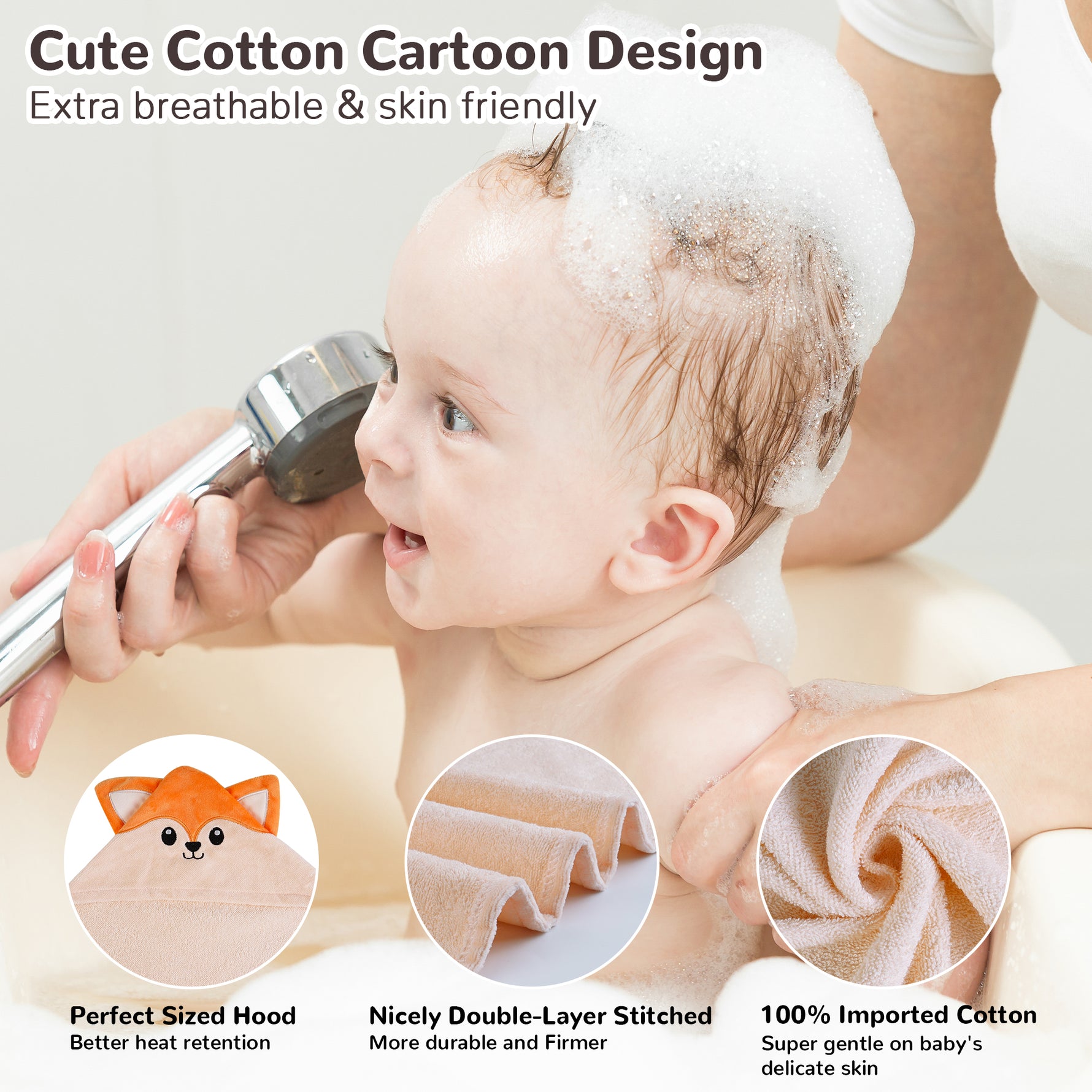 (Fox & Rabbit) 2 Pack Cotton Hooded Baby Towels, Extra Thick and Absorbent, 32" * 32"