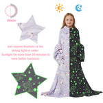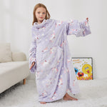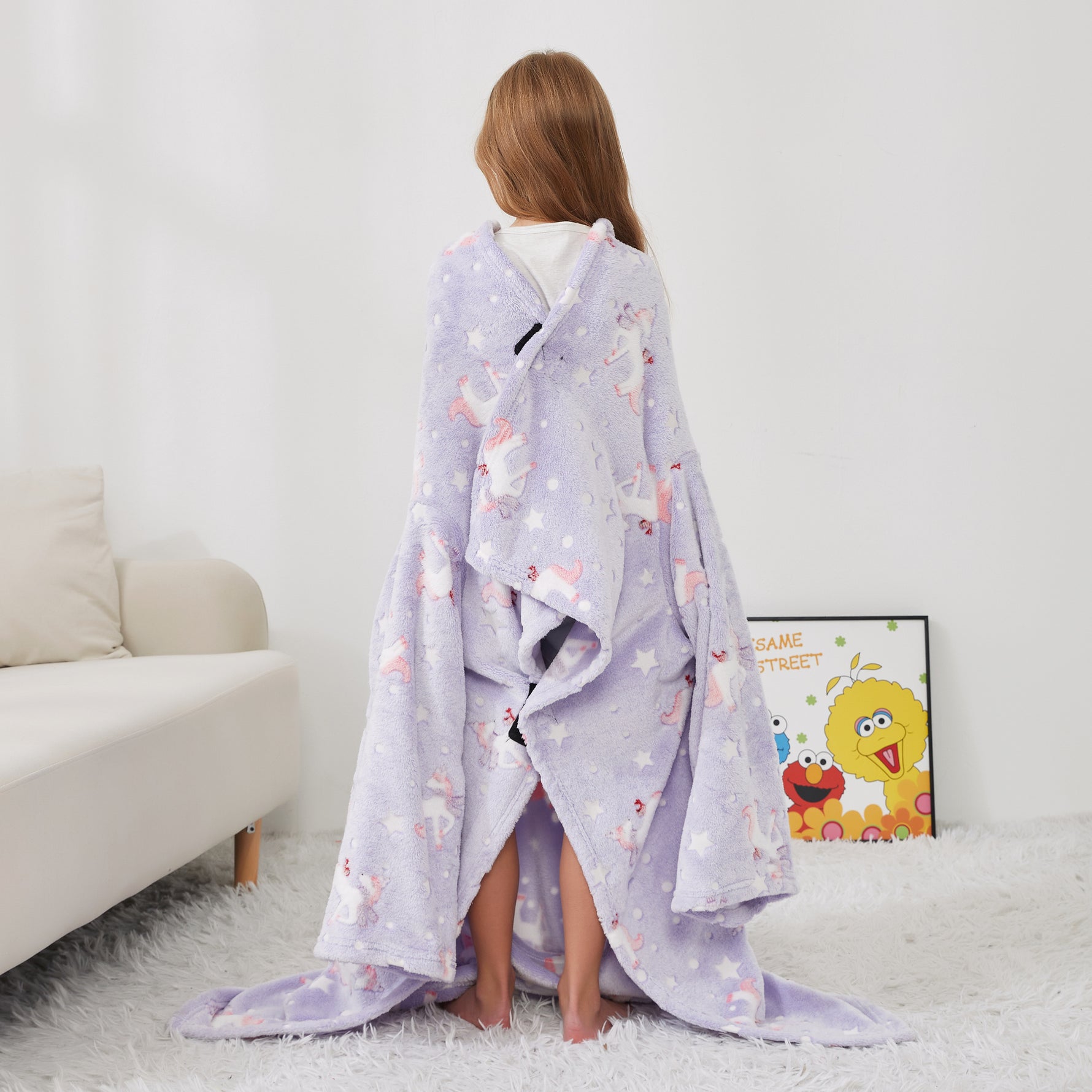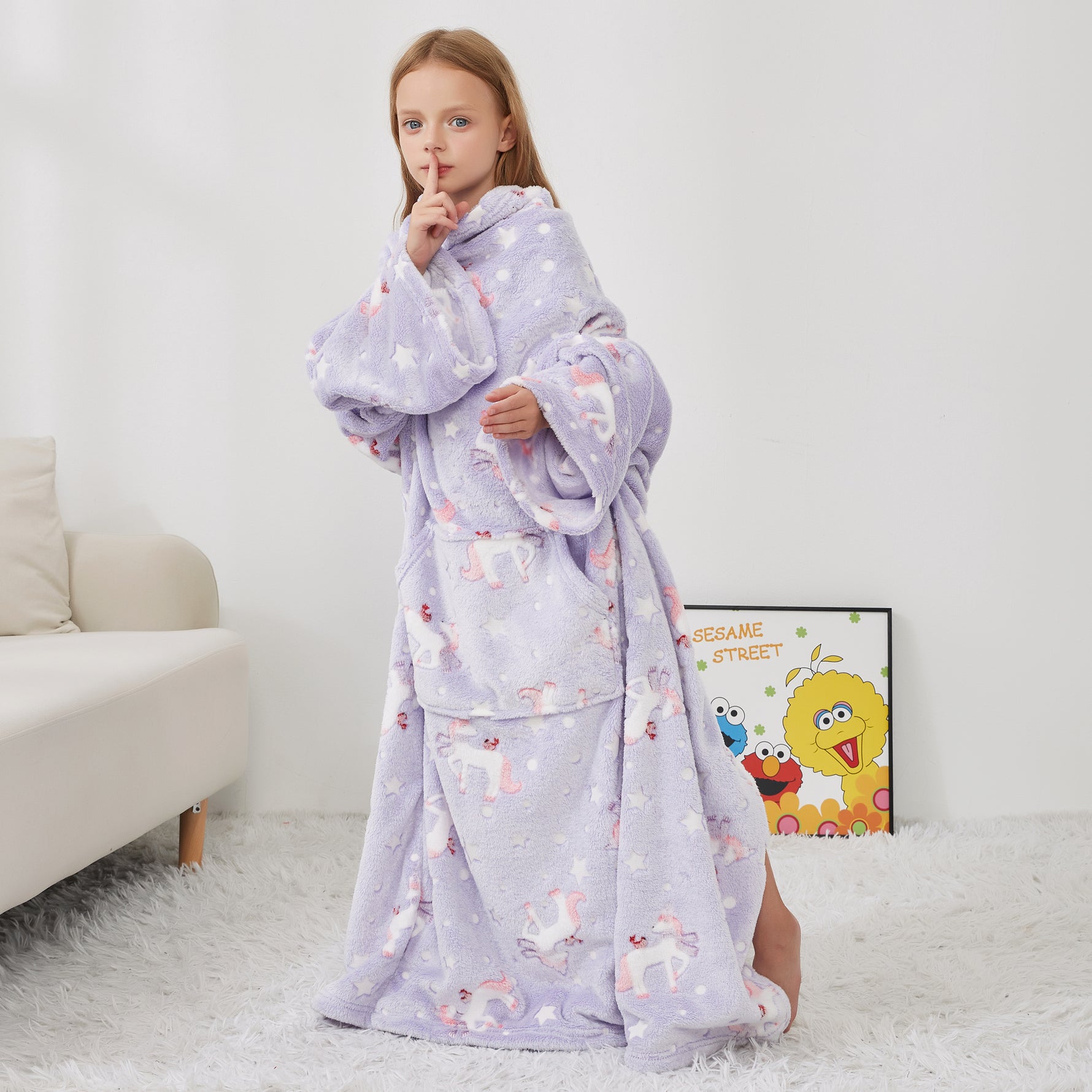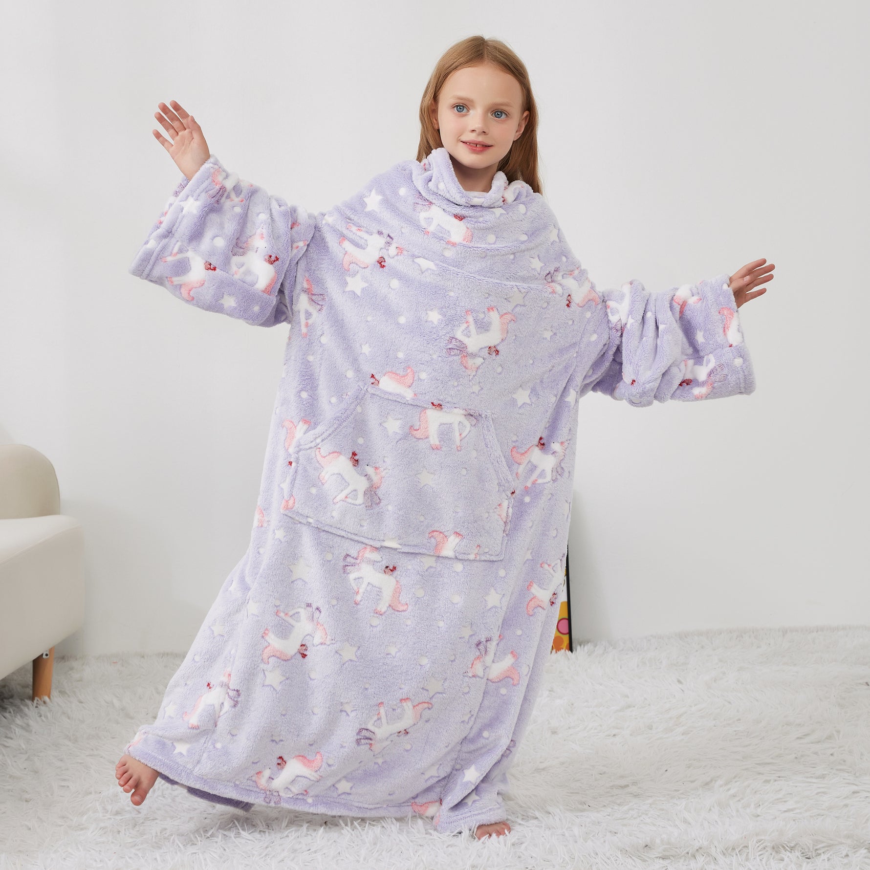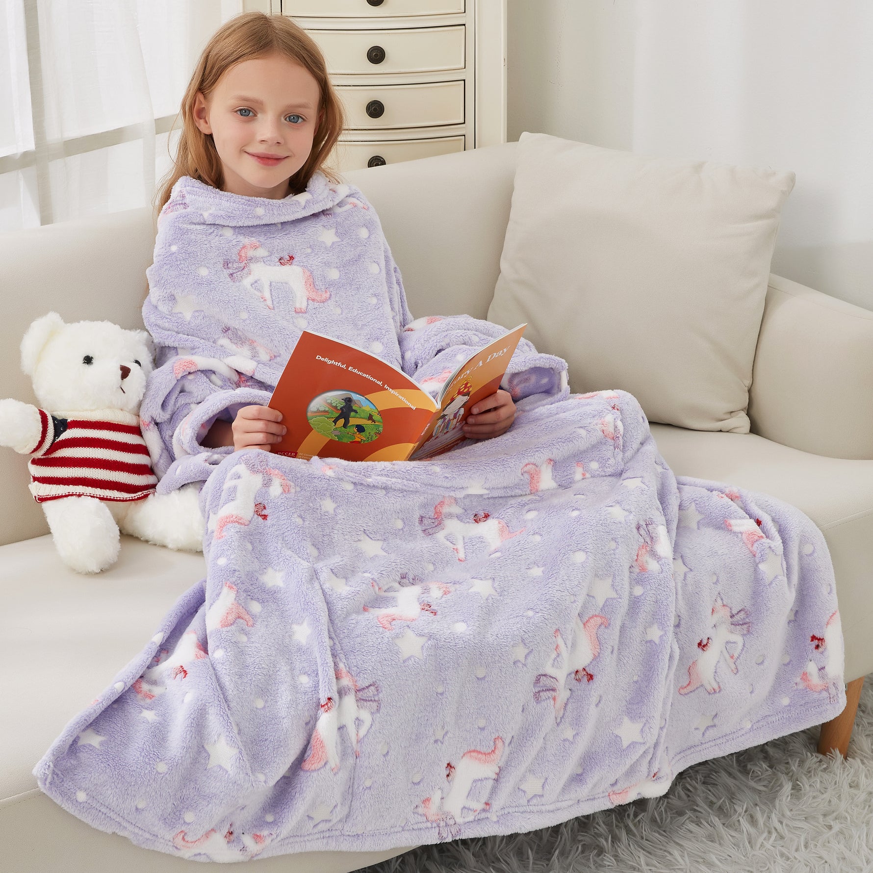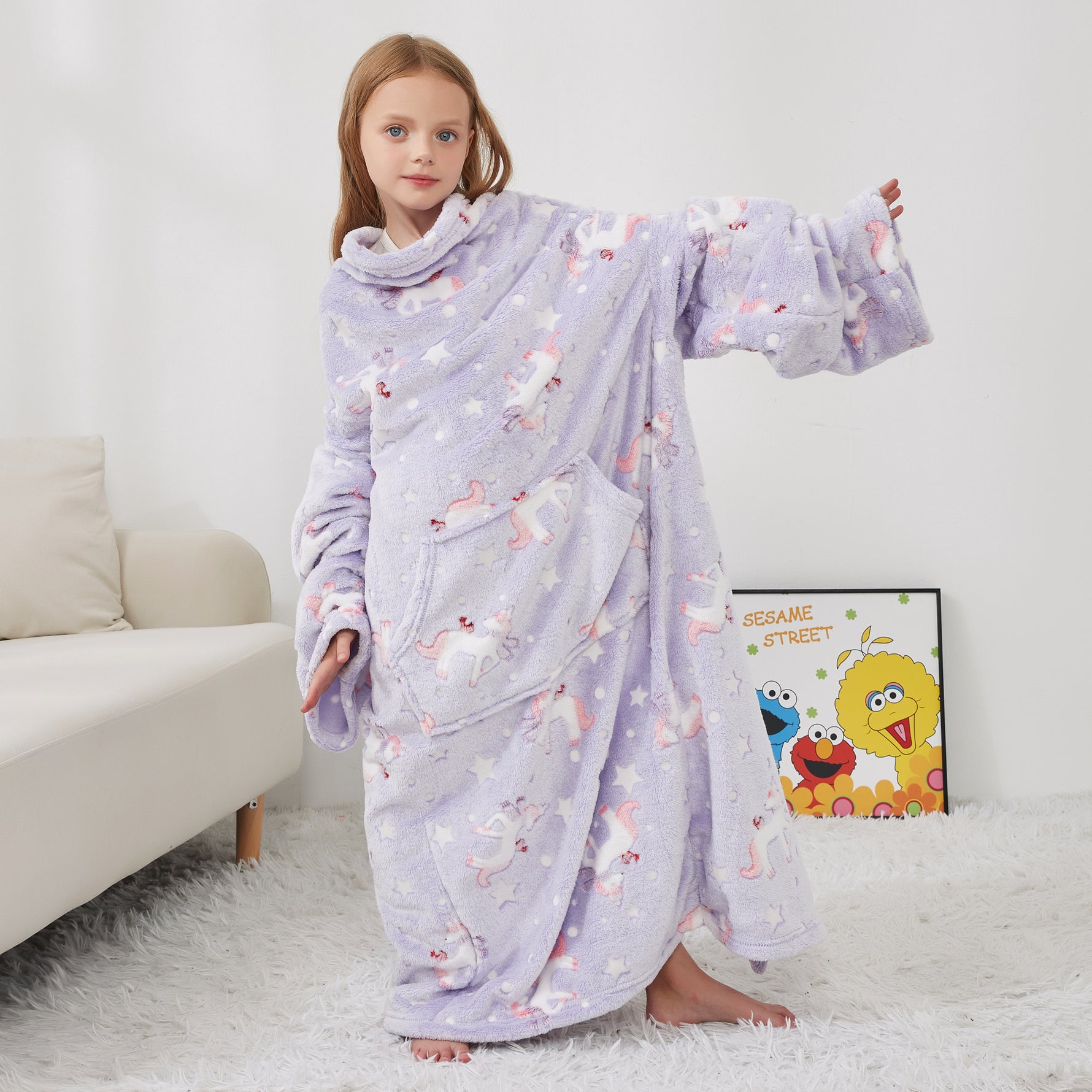 Glowing Unicorn Wearable Fleece Blanket with Sleeves & Foot Pocket for Kids