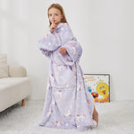 - Wearable Blanket Kids: Blanket with sleeves covers shoulders, arms and keep hands free.Foot pocket to wrap around your feet for maximum comfort stay warm from head to toe during winter while you are watching TV, lounging on sofa/bed, reading, studying, playing games, or napping.Front pocket to carrier your phone or remote and keep your hands warm.