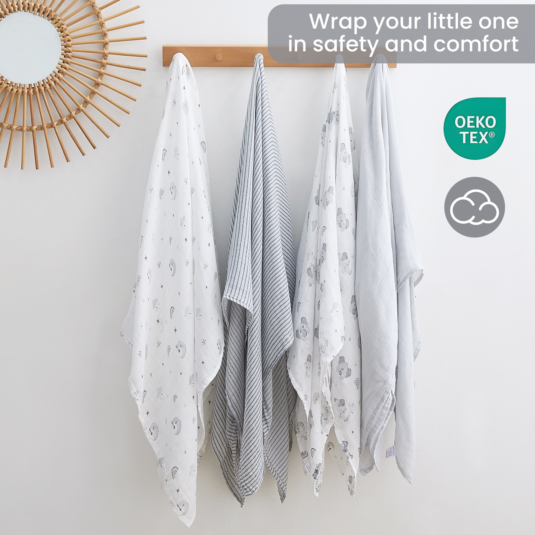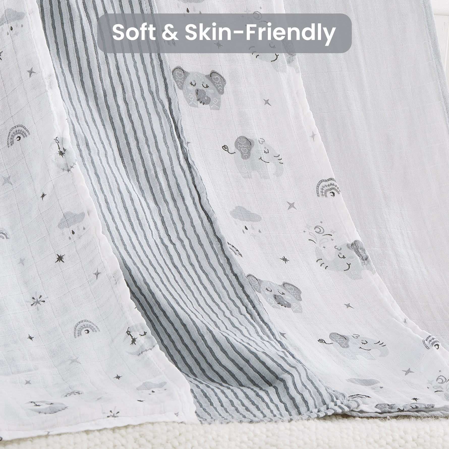 Gray Elephant Muslin Swaddle Blankets for Baby Girls & Boys Gift