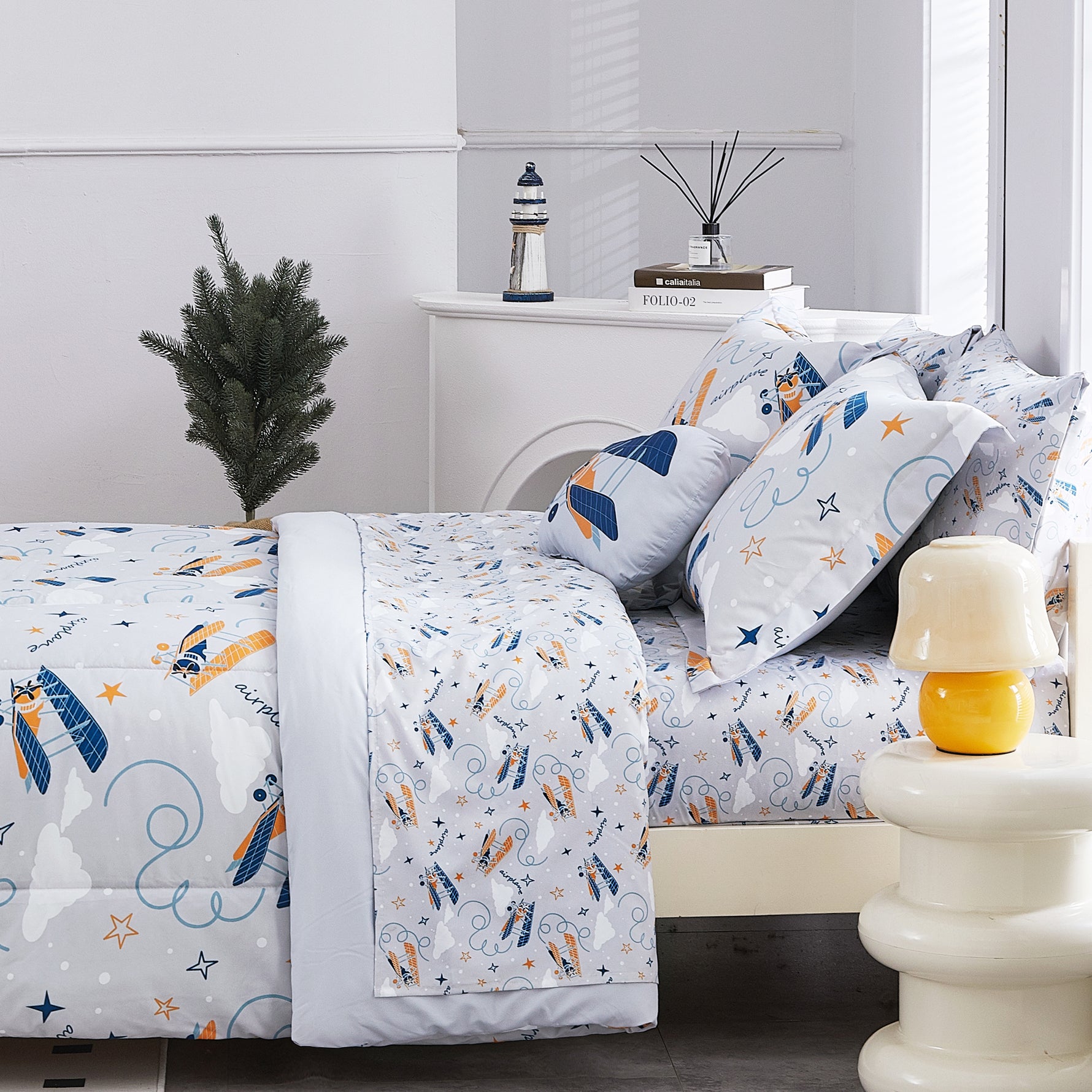 Grey Glider 6/8 Pcs Comforter Sets for Girls Kids