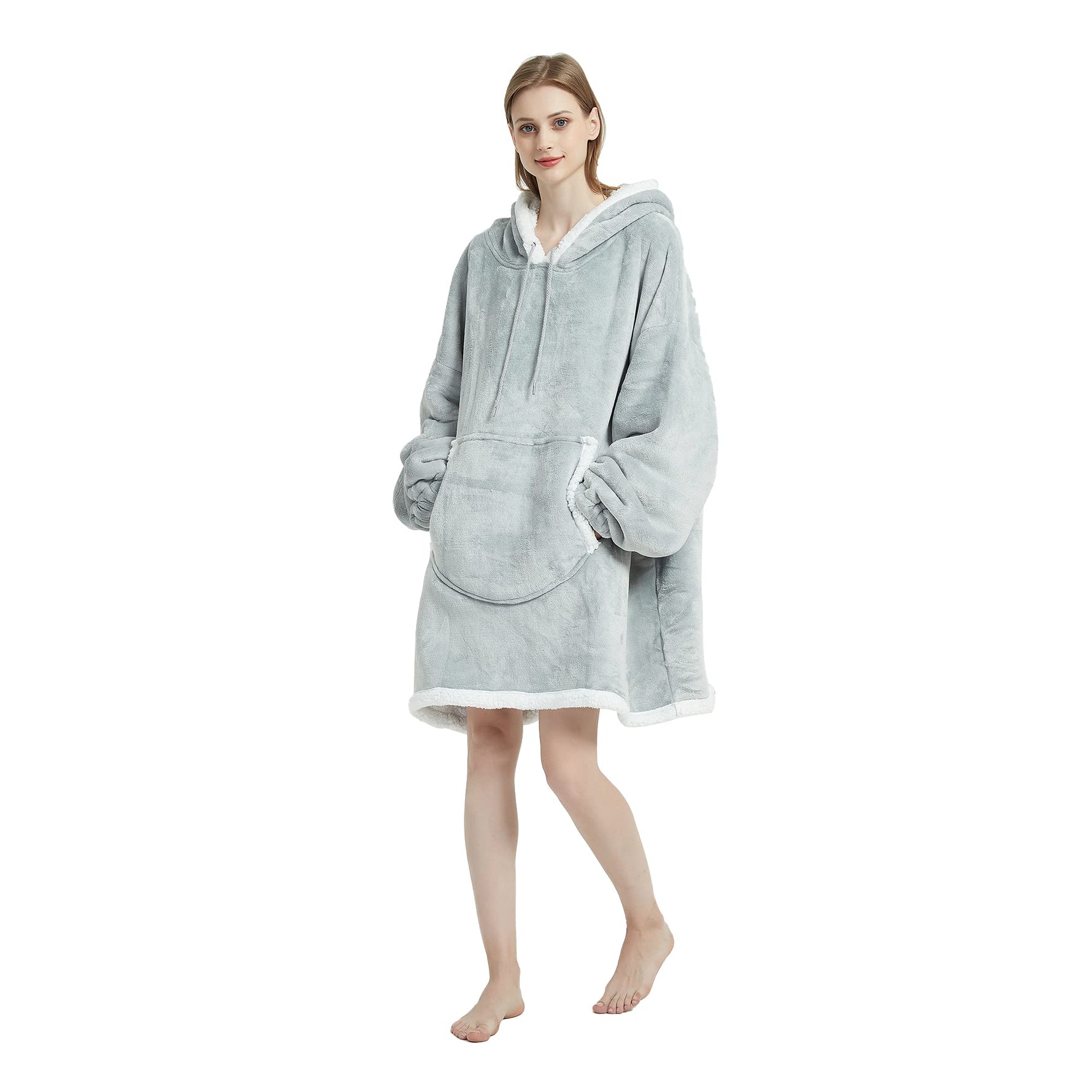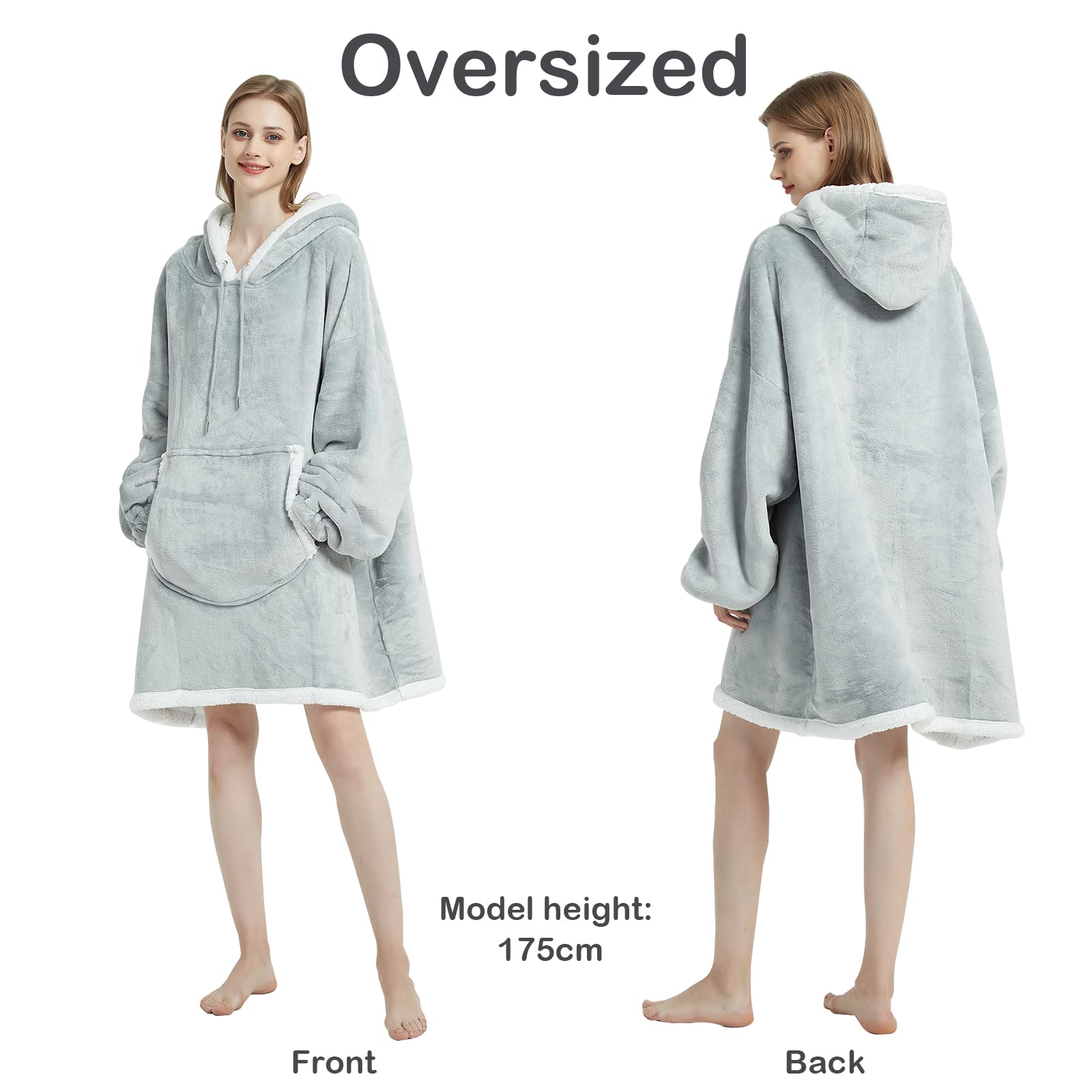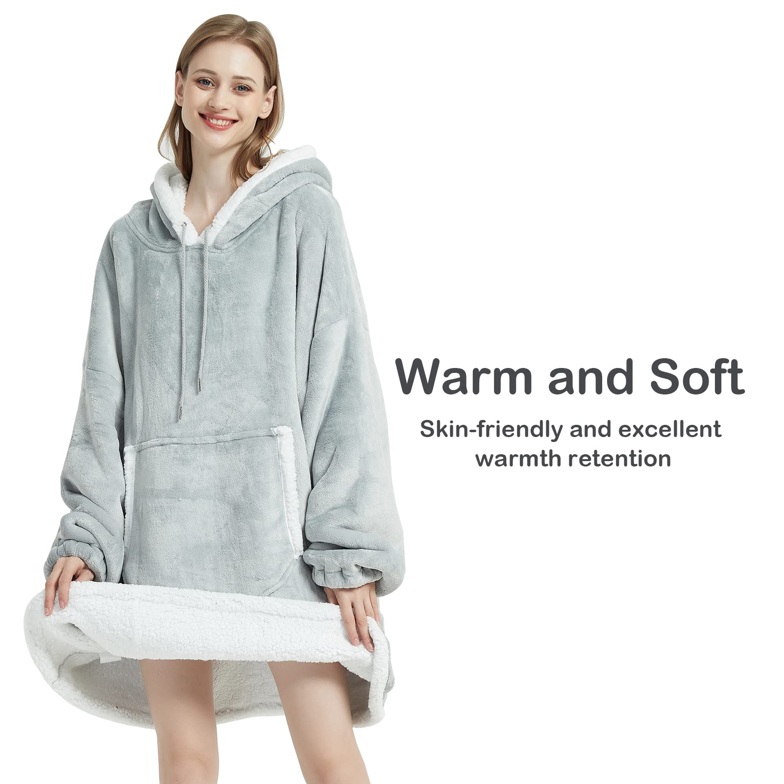 - đ§ĽăOne Size Fits AllăSuper warm oversized blanket hoodie has plush long hooded bathrobe, which is suitable for adults, women, men.
