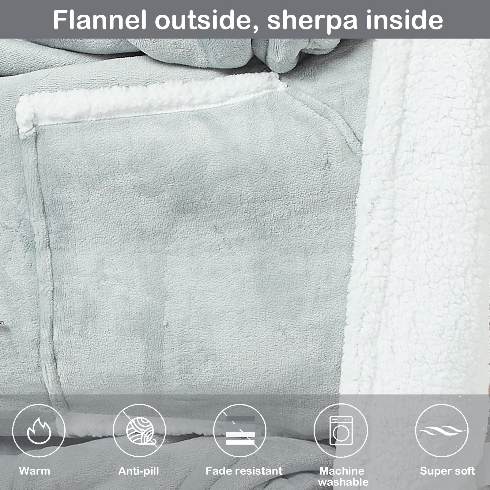 Grey Oversized Sherpa Fleece Wearable Blanket for Women & Men