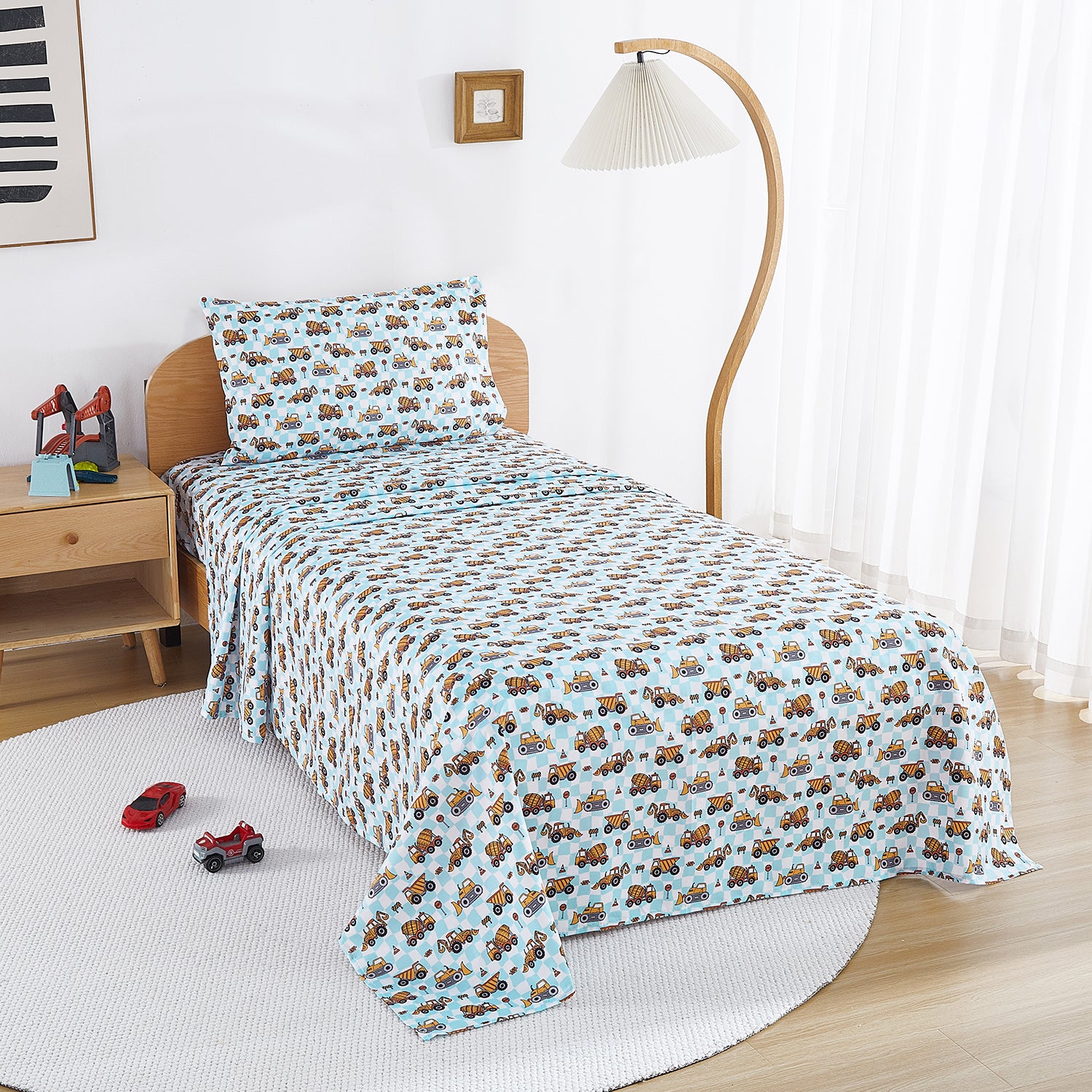 Easy Care: You can simply throw the boys kids sheet set into the washer in cold water with like color. Dries quick on tumble dry low. Premium microfiber sheet set does not fade, please rest assured.